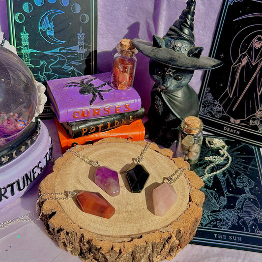 I recently started to get into crystals and learning about witchcraft, and saw this shop on TikTok and wanted to try it for myself. The crystals that I got (along with the spiral cage pendant) are so beautiful and in really great condition. Definitely will order again!