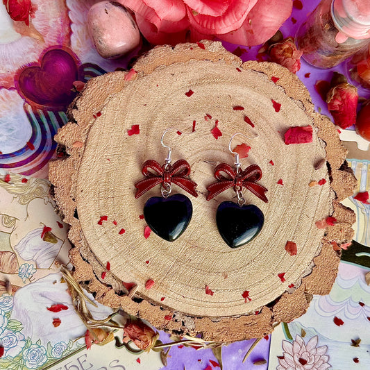 black obsidian bow earrings ~ on sterling silver 925 hooks