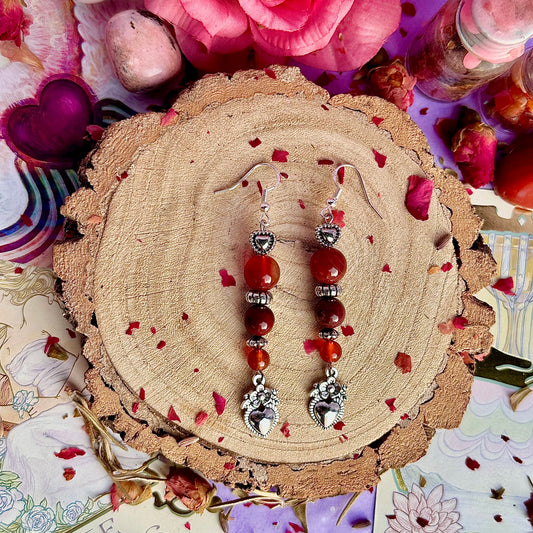 carnelian & mookite heart earrings ~ sterling silver on 925 hooks