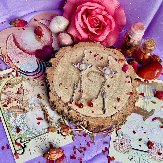 rose quartz, moonstone & carnelian angels arrow earrings ~ sterling silver on 925 hooks