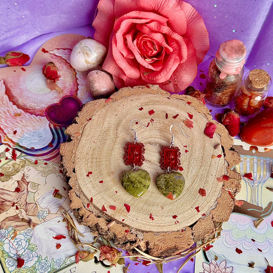 unakite rose frame earrings ~ sterling silver on 925 hooks