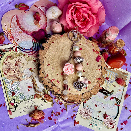 angel rose bag charm / keyring ~ rose quartz & strawberry quartz