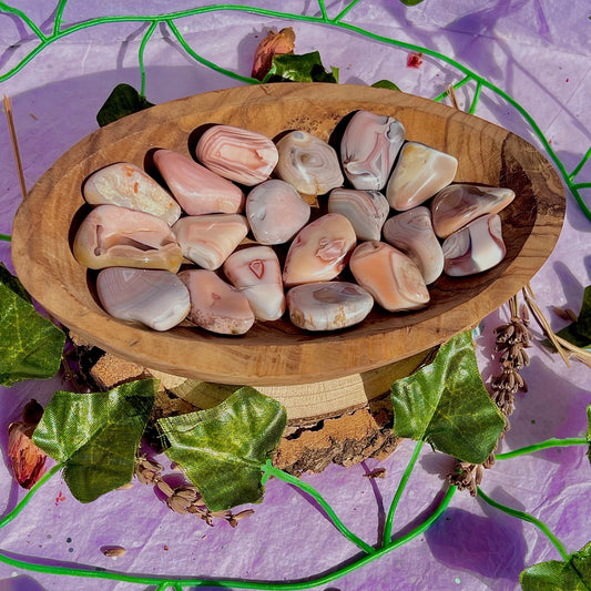 pink and grey botswana agate tumbles