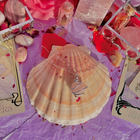 wrapped around my heart necklace sterling silver plated 18 inch chain ~ rose quartz
