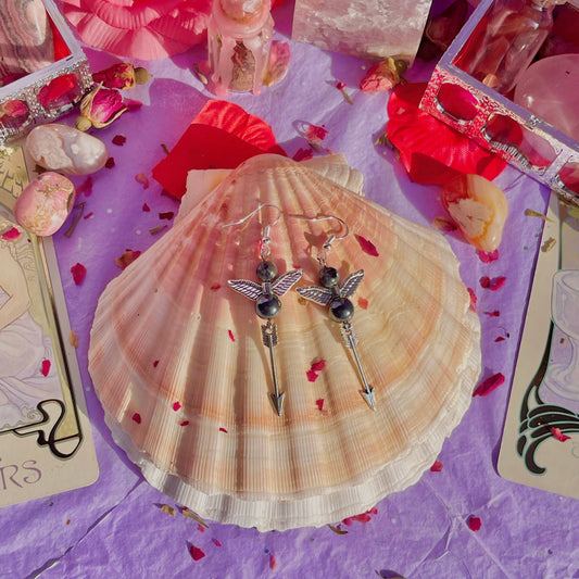 cherubs arrow earrings on 925 sterling silver hooks ~ larvikite & hematite