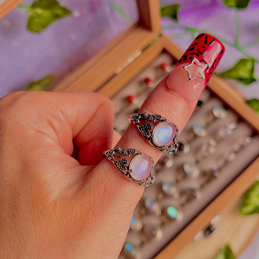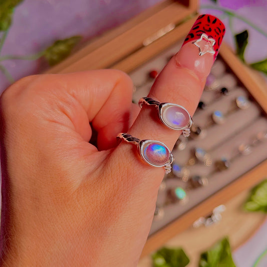rainbow moonstone style E ~ 925 sterling silver adjustable rings / intuitively chosen