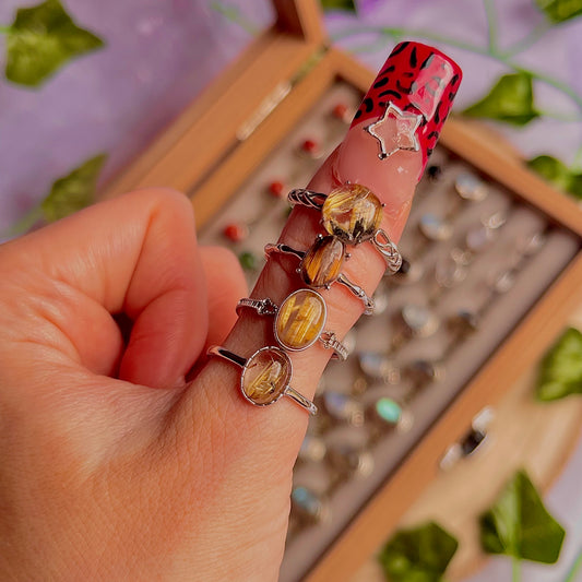 gold rutile quartz style A ~ 925 sterling silver adjustable rings / intuitively chosen