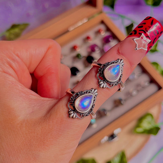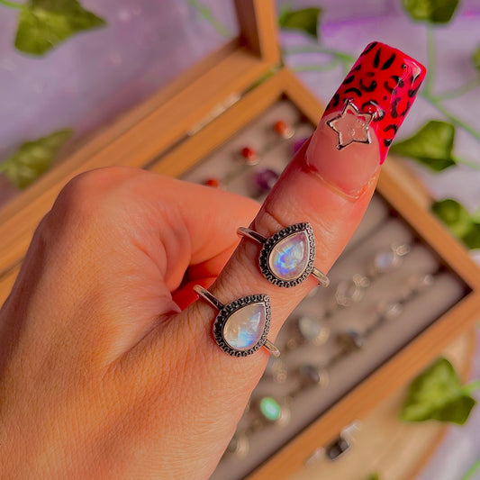rainbow moonstone style B ~ 925 sterling silver adjustable rings / intuitively chosen