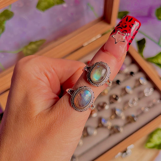 labradorite style D ~ 925 sterling silver adjustable rings / intuitively chosen