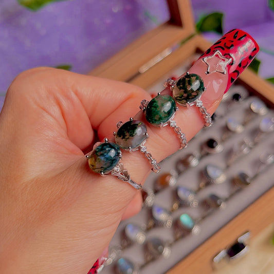 moss agate style B ~ 925 sterling silver adjustable rings / choose your own