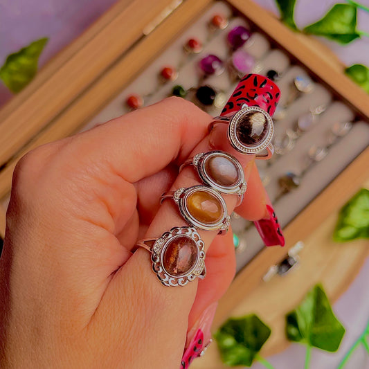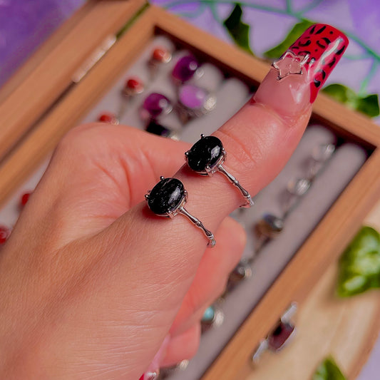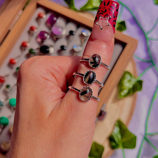 black rutile quartz ~ 925 sterling silver adjustable rings / intuitively chosen