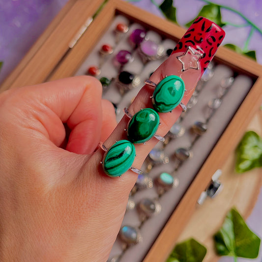 malachite ~ 925 sterling silver adjustable rings / choose your own
