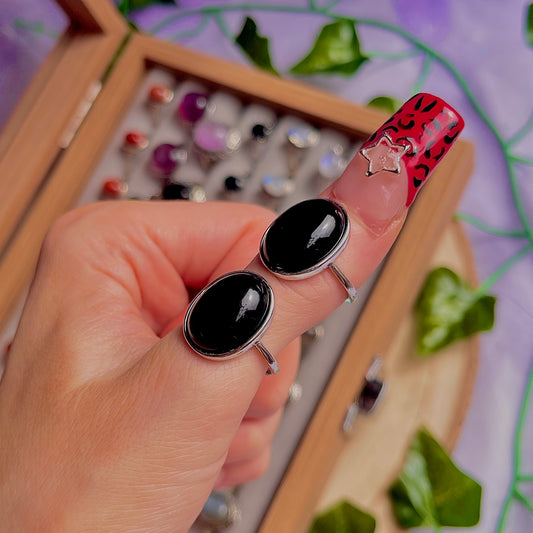 black obsidian ~ 925 sterling silver adjustable rings / intuitively chosen