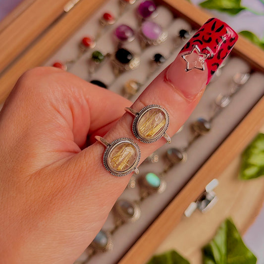 gold rutile quartz style B ~ 925 sterling silver adjustable rings / choose your own