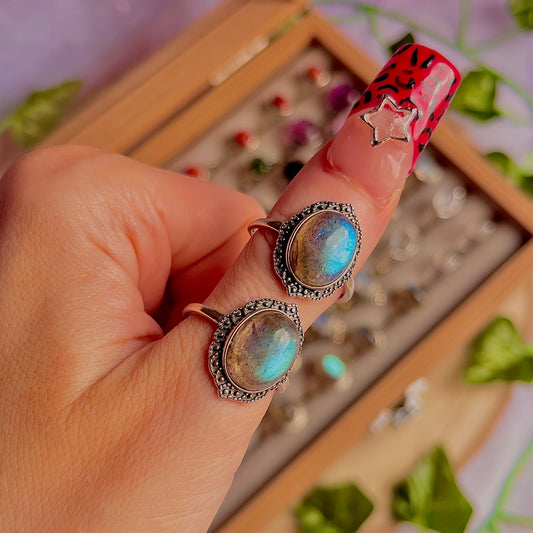 labradorite style B ~ 925 sterling silver adjustable rings / intuitively chosen