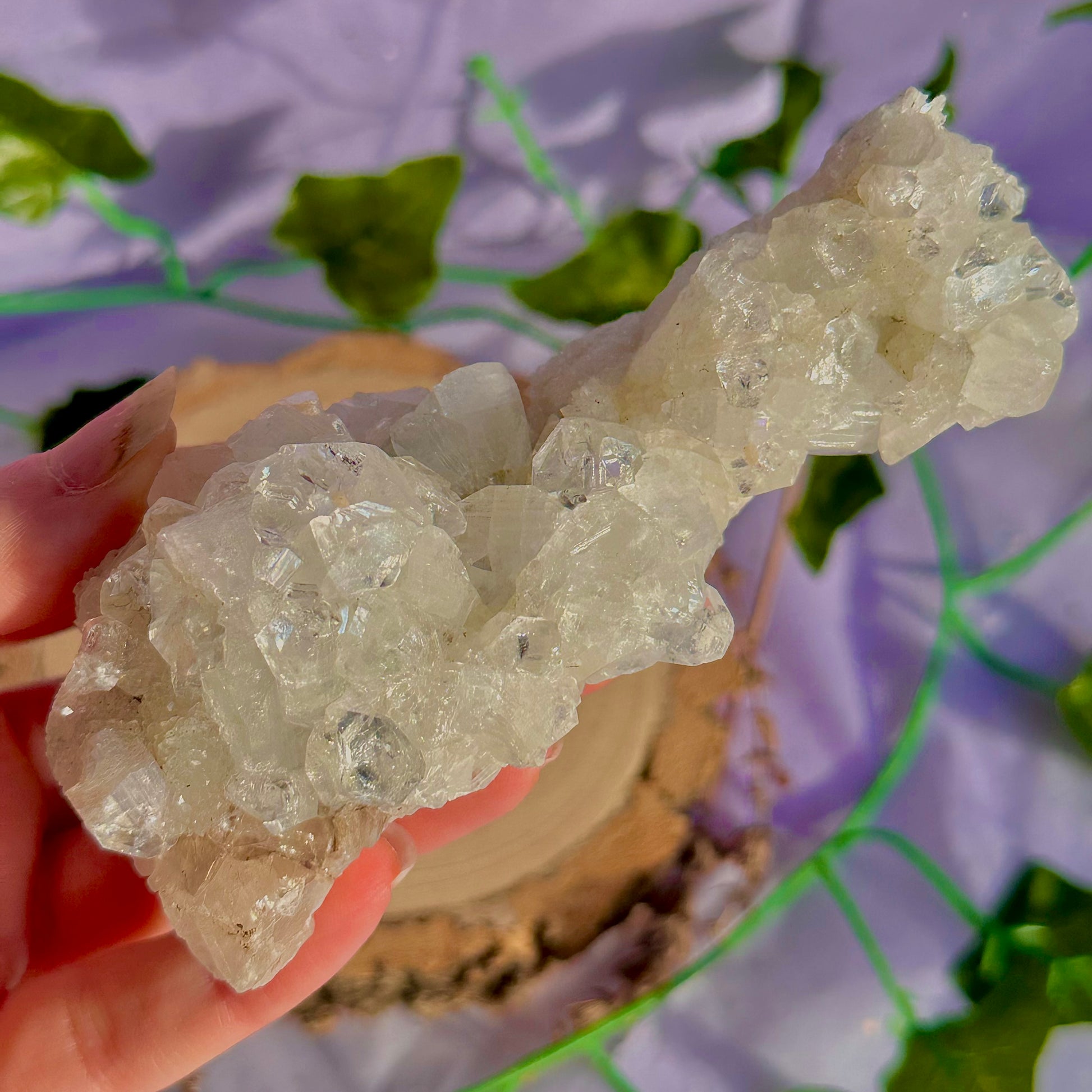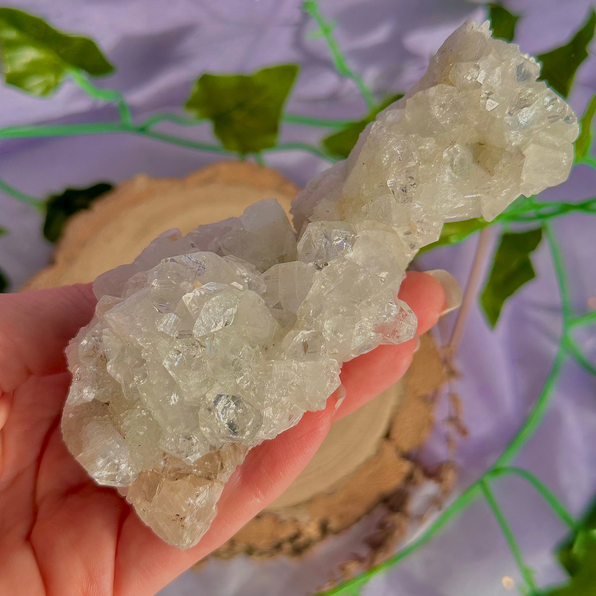Apophyllite is an angelic, powerful crystal that can be used for healing and transformation. It has a strong connection to higher realms also can be used to help with those wanting to astral travel, it creates a connection between the physical and spiritual realms. This beautiful crystal will also help with clearing blockages in your chakras and assist in helping to open up the third eye and crown chakras. A great crystal to use in rituals and spells using water magic due to its connection with the water element. Amazing to work with when wanting to align with your highest good, allows you to release self-doubt and recognise your self worth.