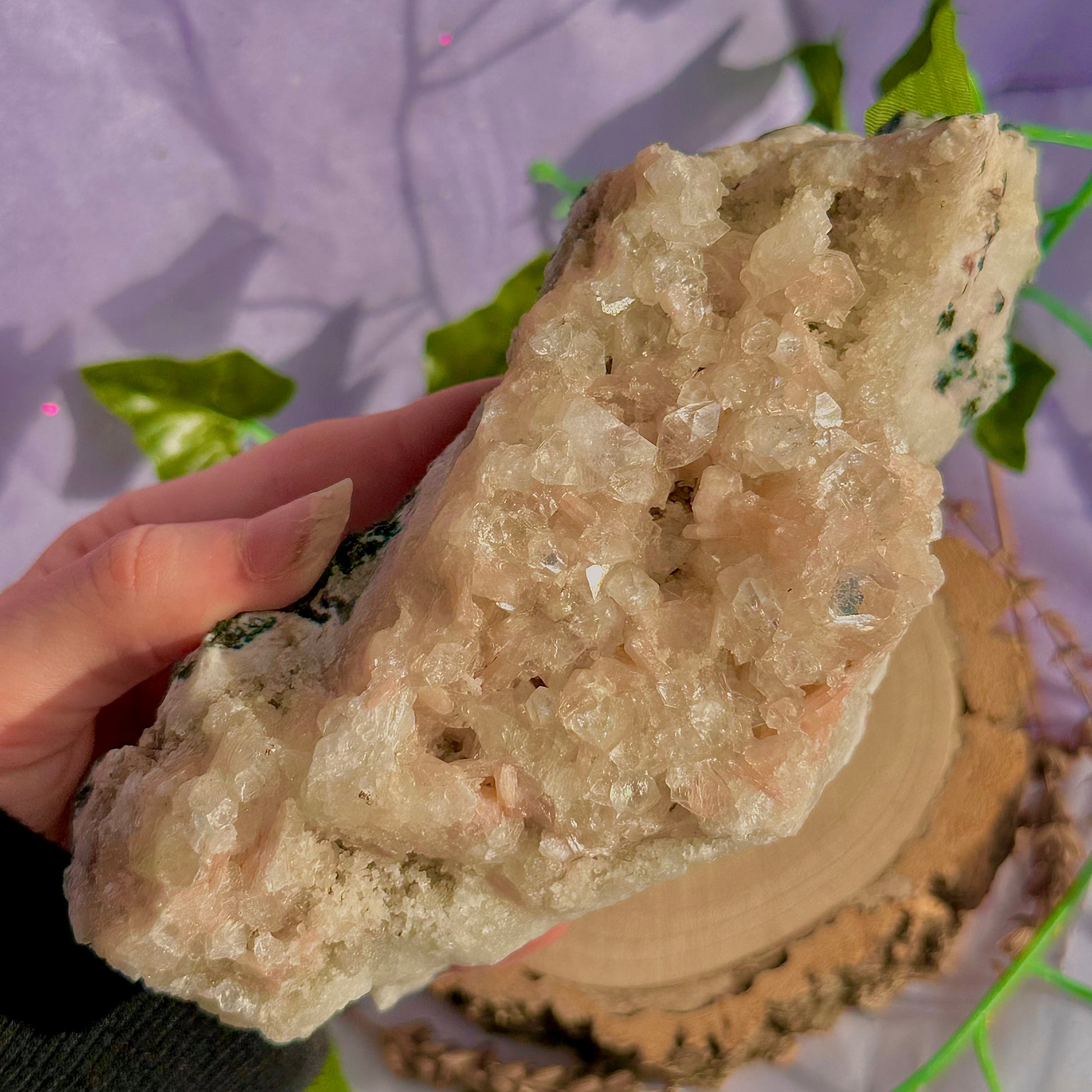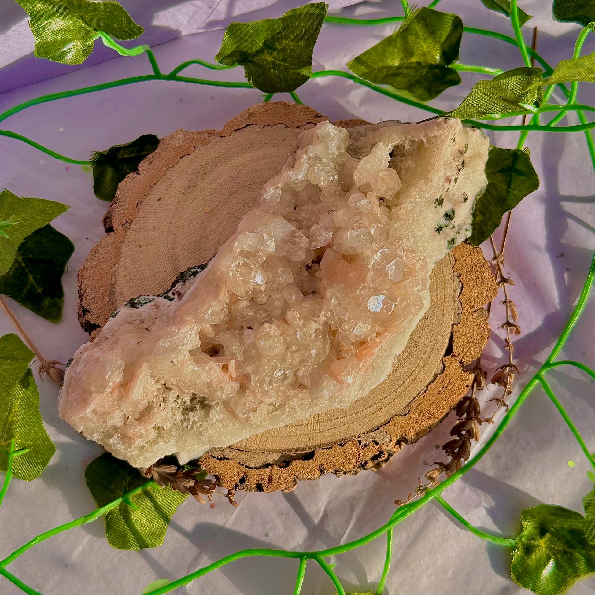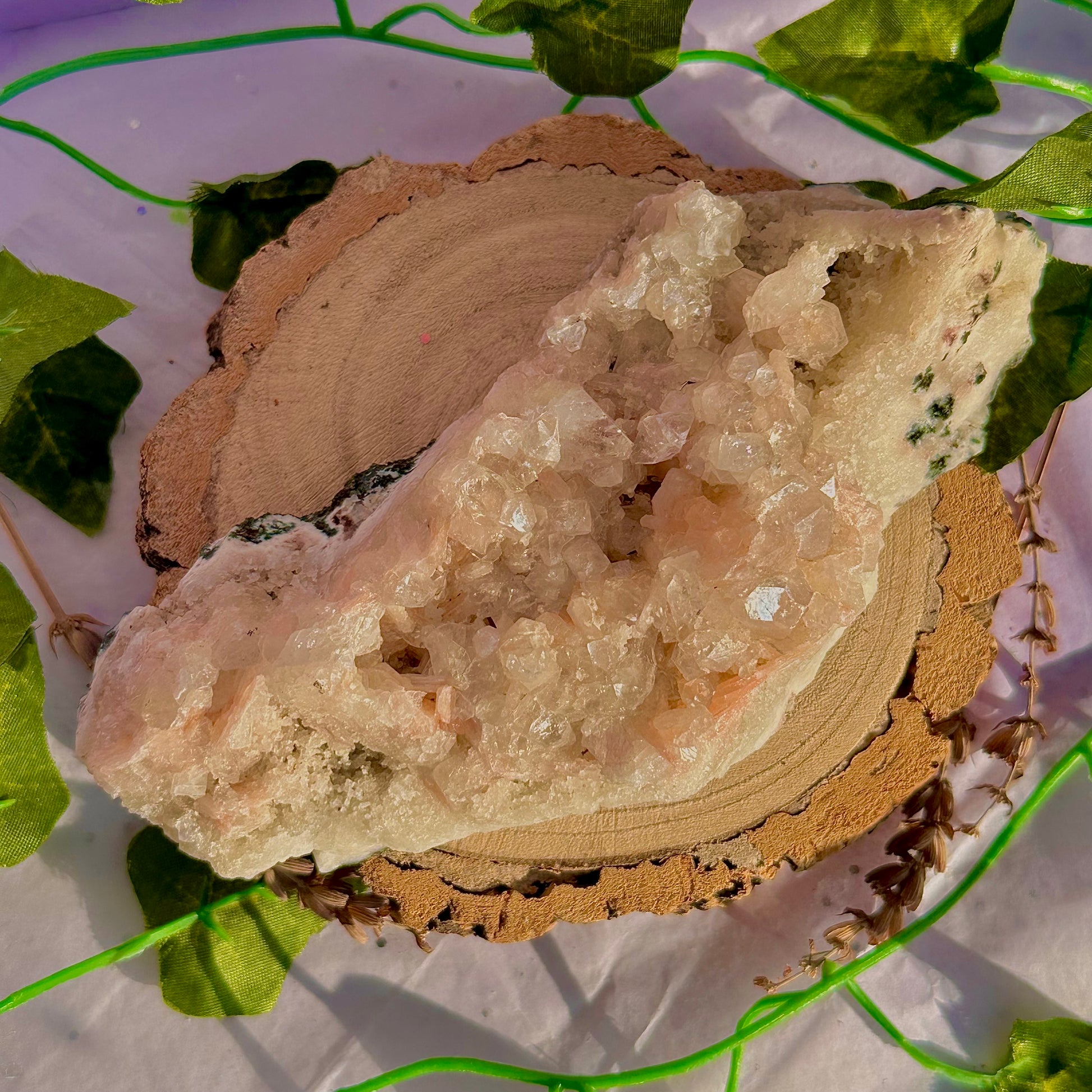 - crystal cleansing; place your crystal on a quartz or amethyst cluster, or inside a geode to cleanse; also placing them on top of selenite (satin spar) or around or using a selenite wand to direct the intention of cleansing