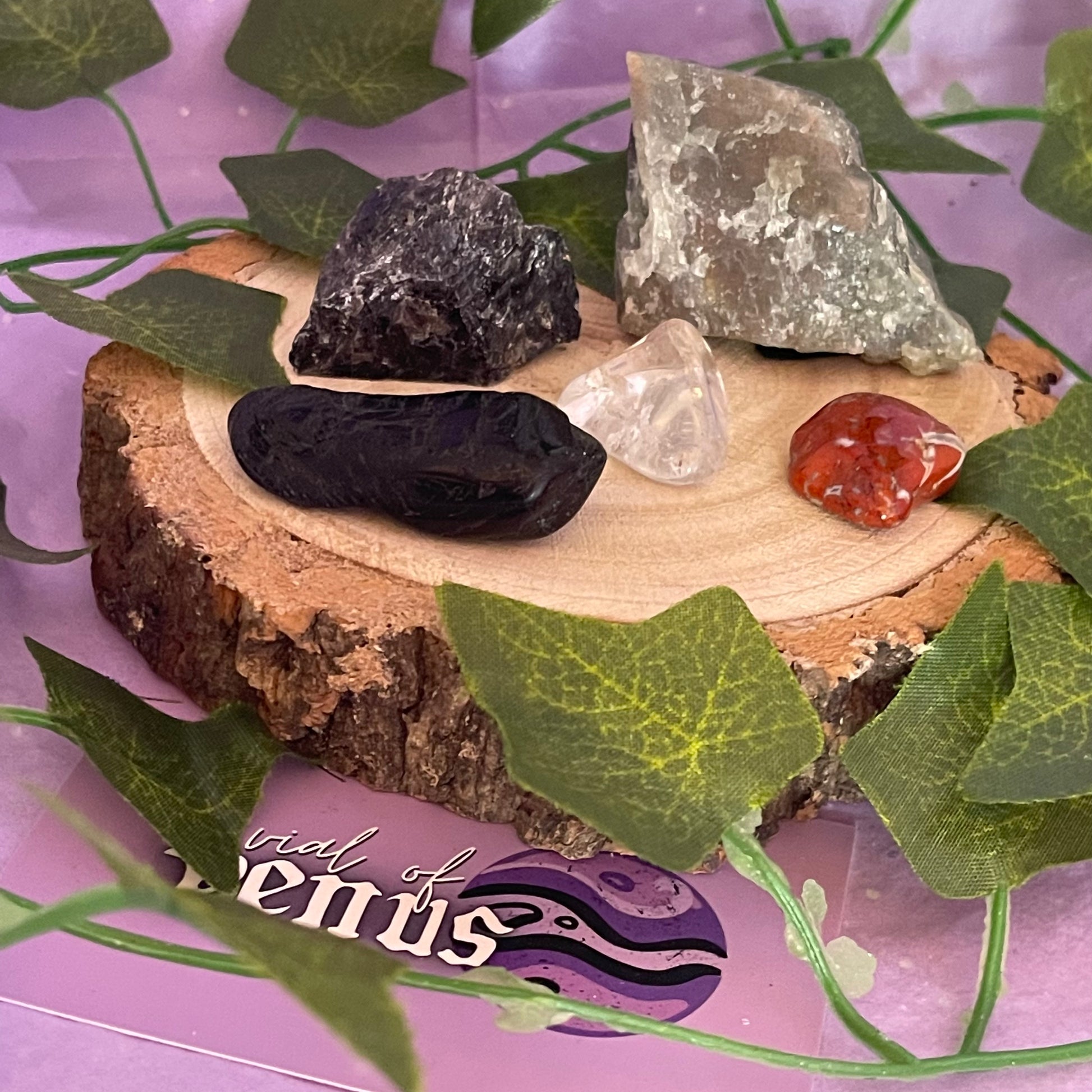 Want to keep the bad energy away? Then this protection bundle will become your best friend. Each crystal in this bundle has well known protective energies and what I personally use daily to keep myself protected from all things that do not serve me. It includes black tourmaline, smokey quartz, clear quartz, labradorite and red jasper.