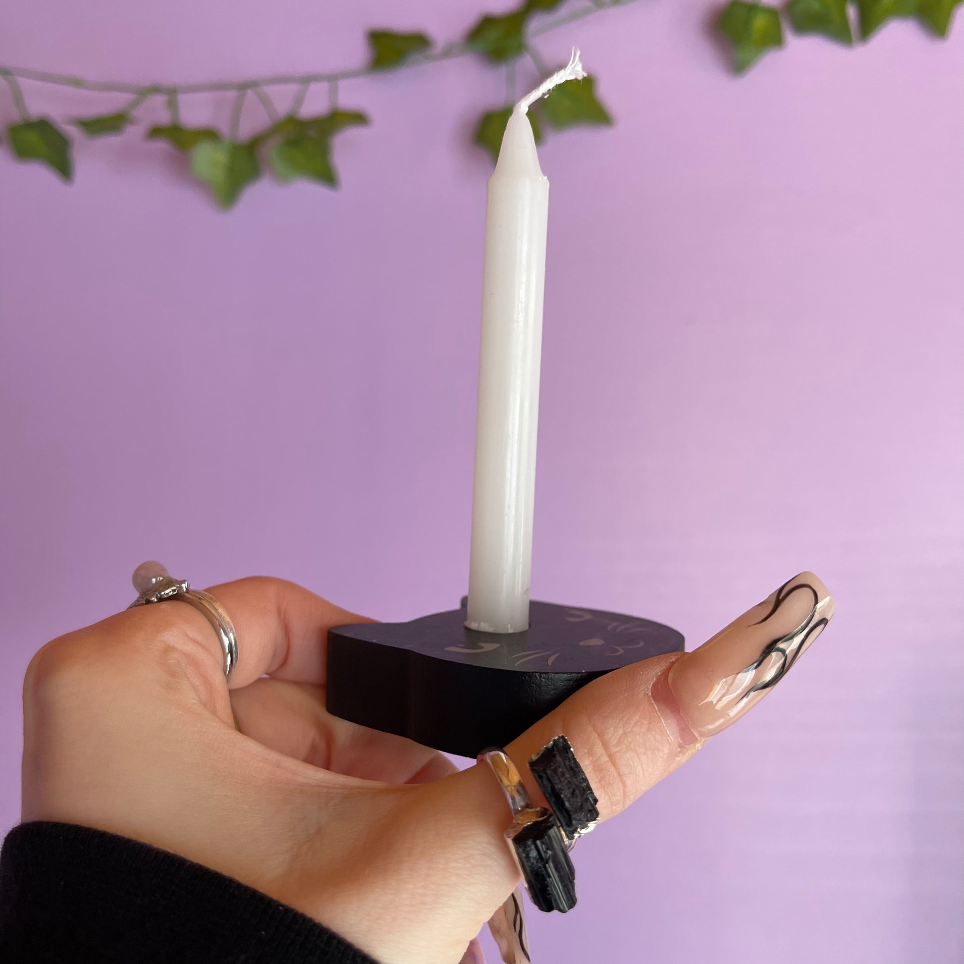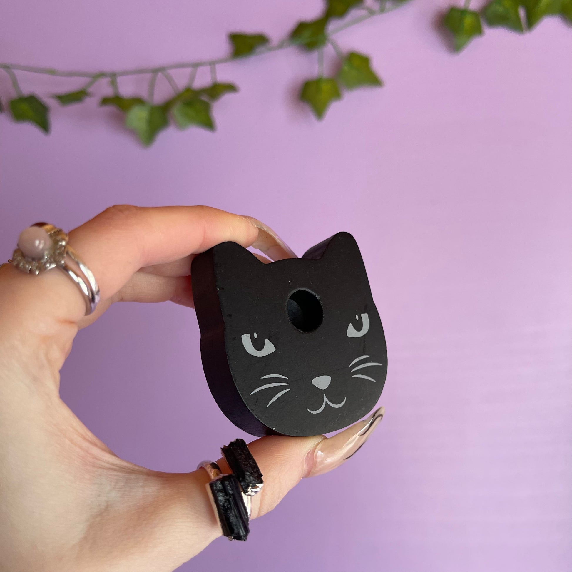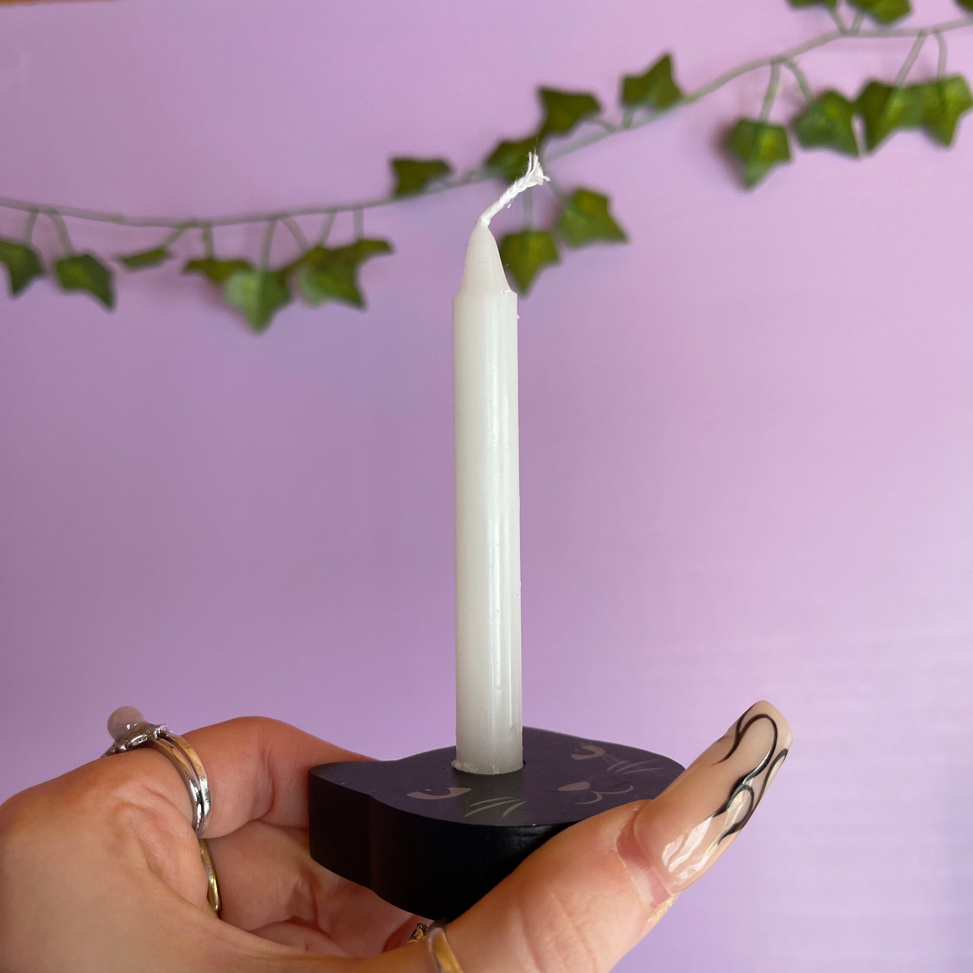This adorable yet mystic and spooky spell candle holder makes the perfect addition to any witches altar or sacred space. Especially if you are a cat lover too!