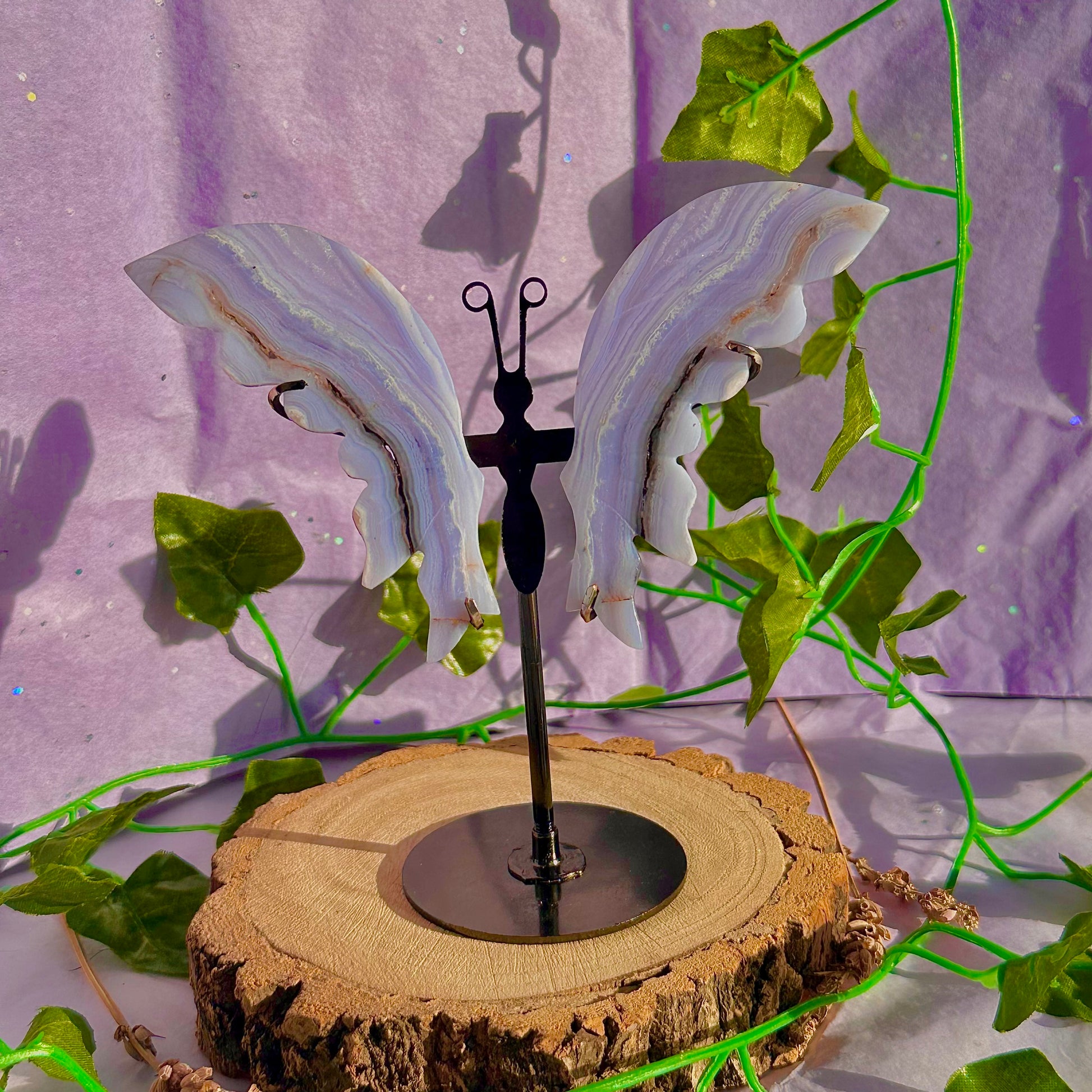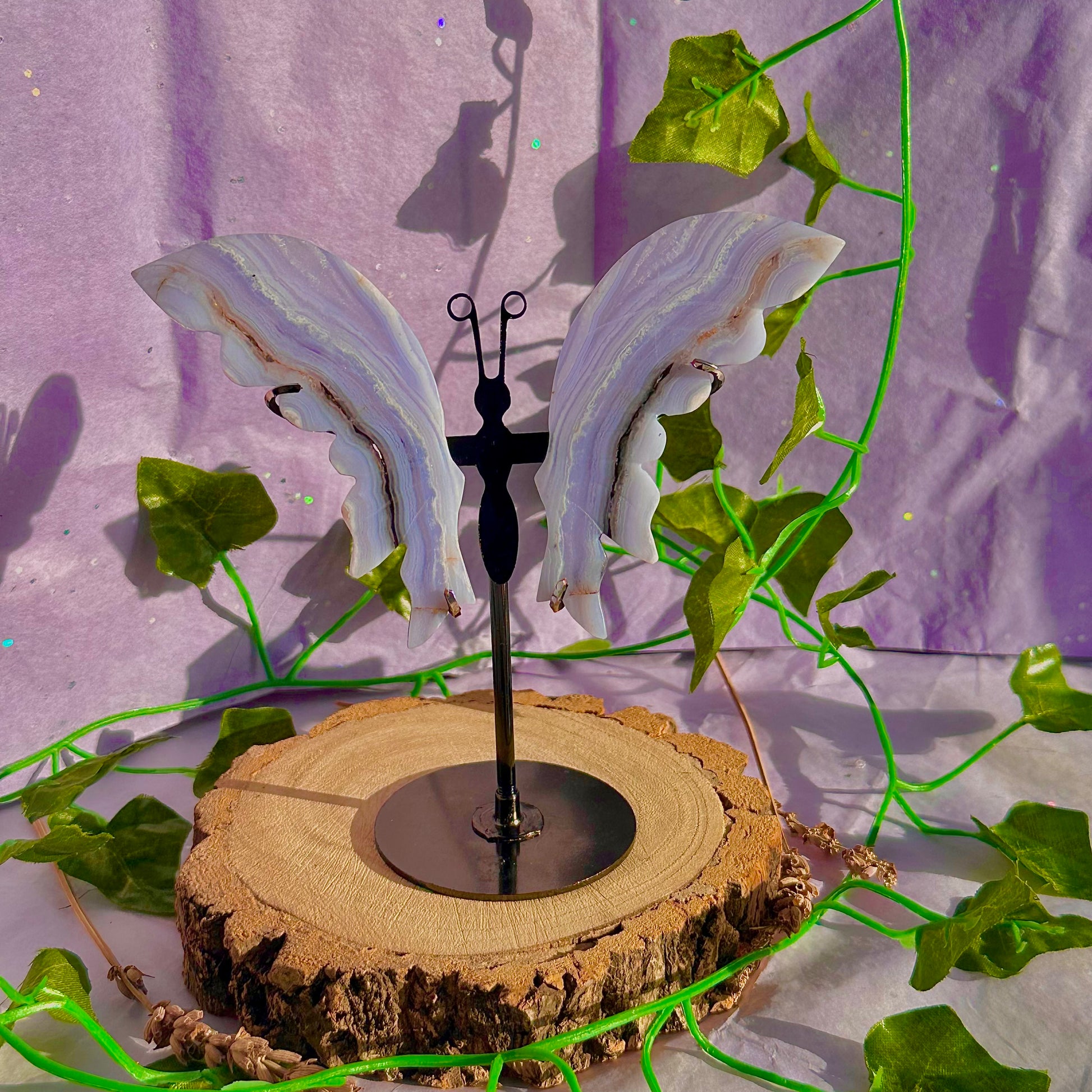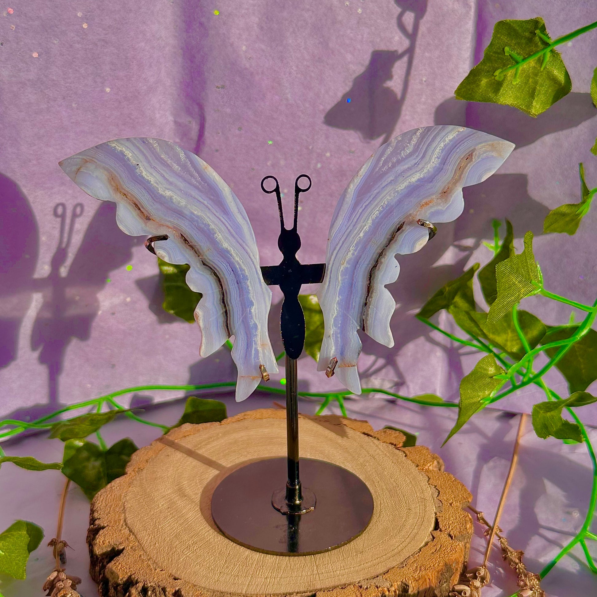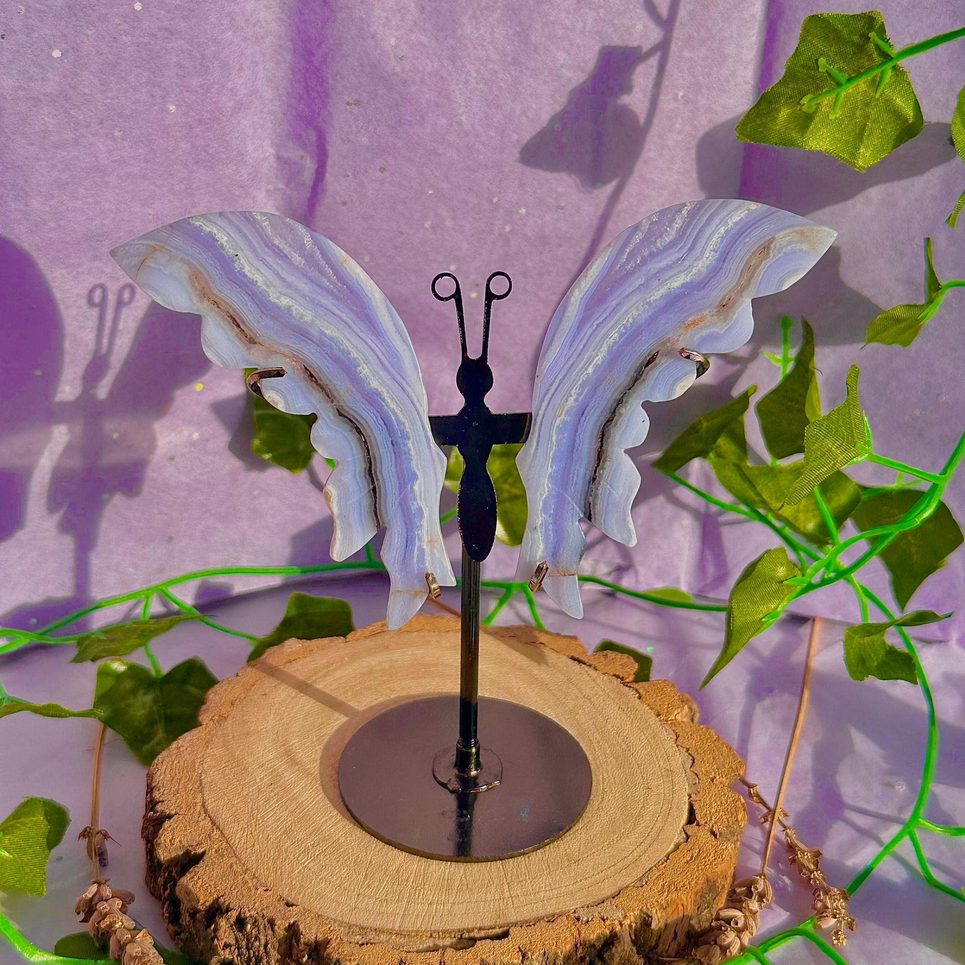 blue lace agate butterfly wings on stand B
