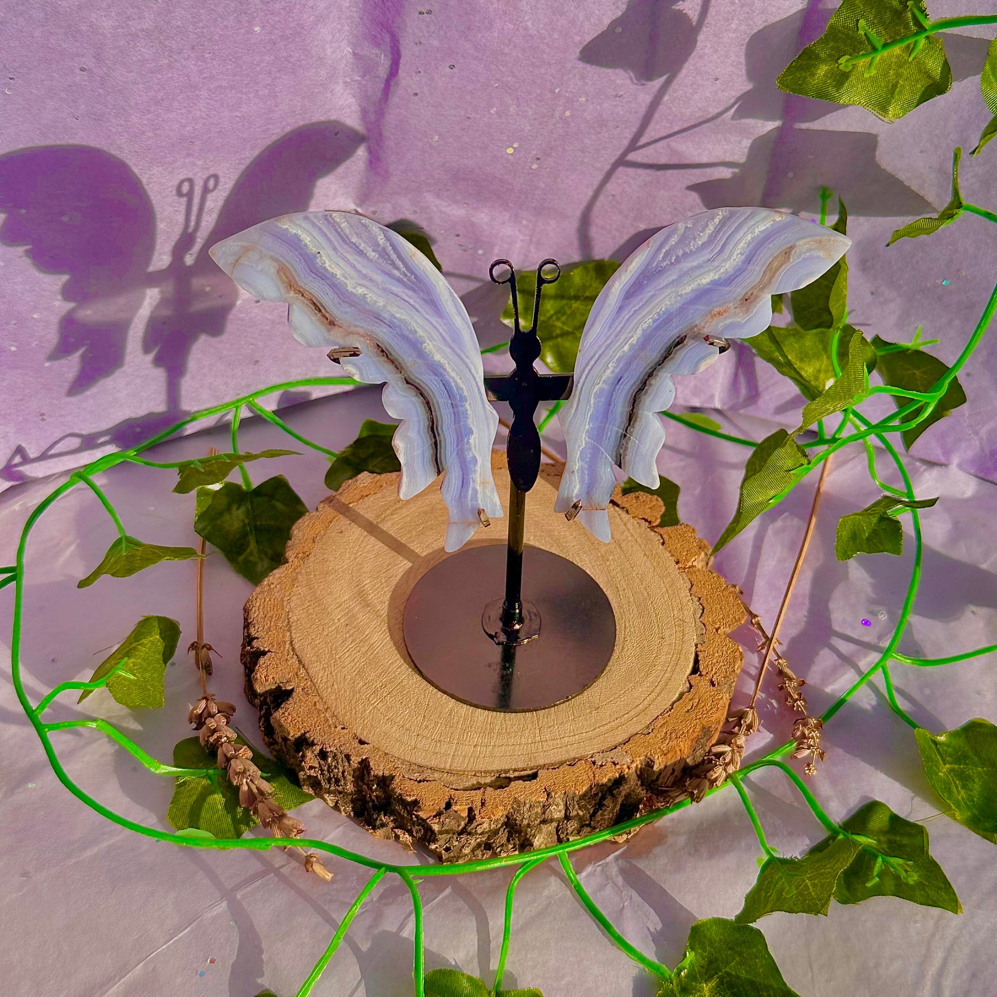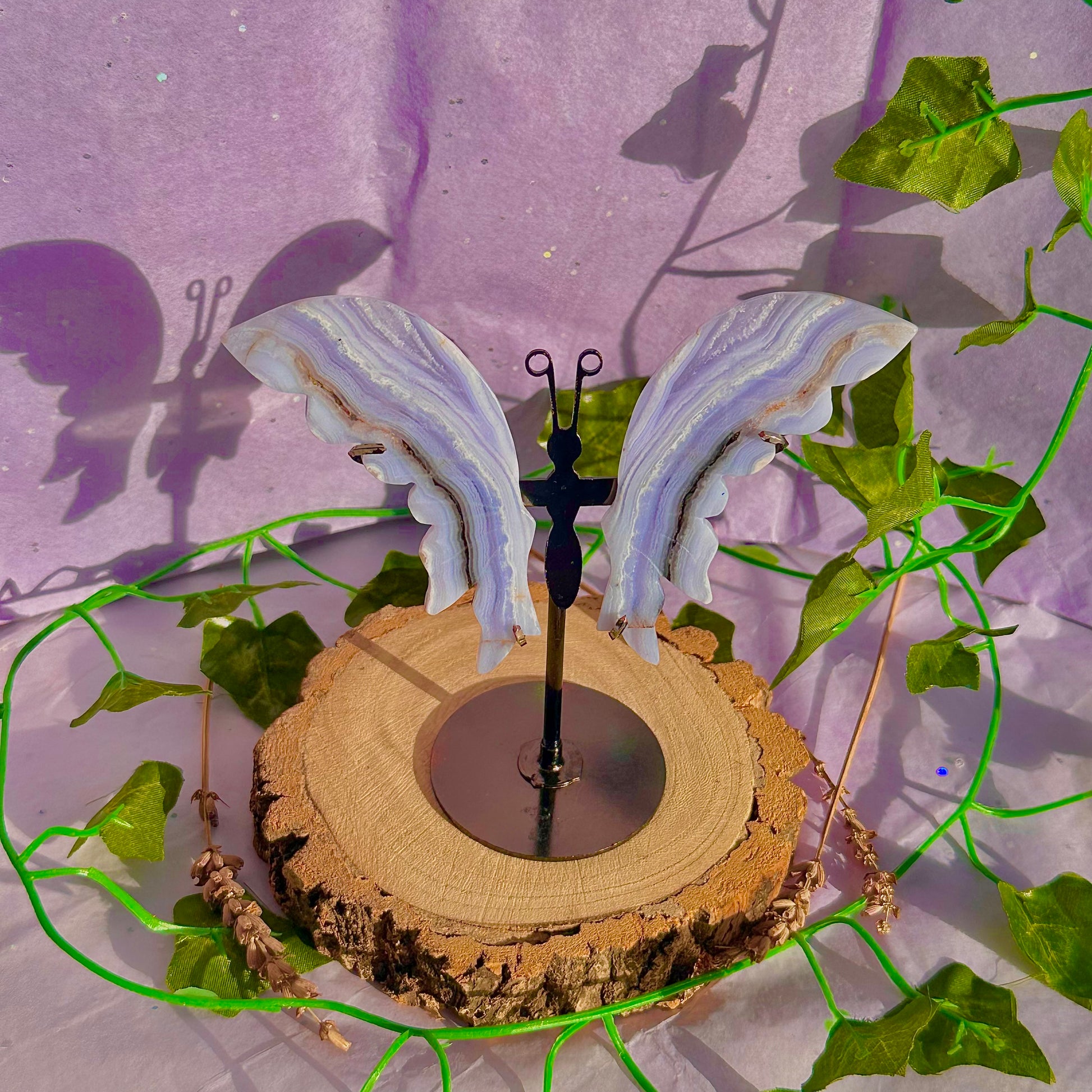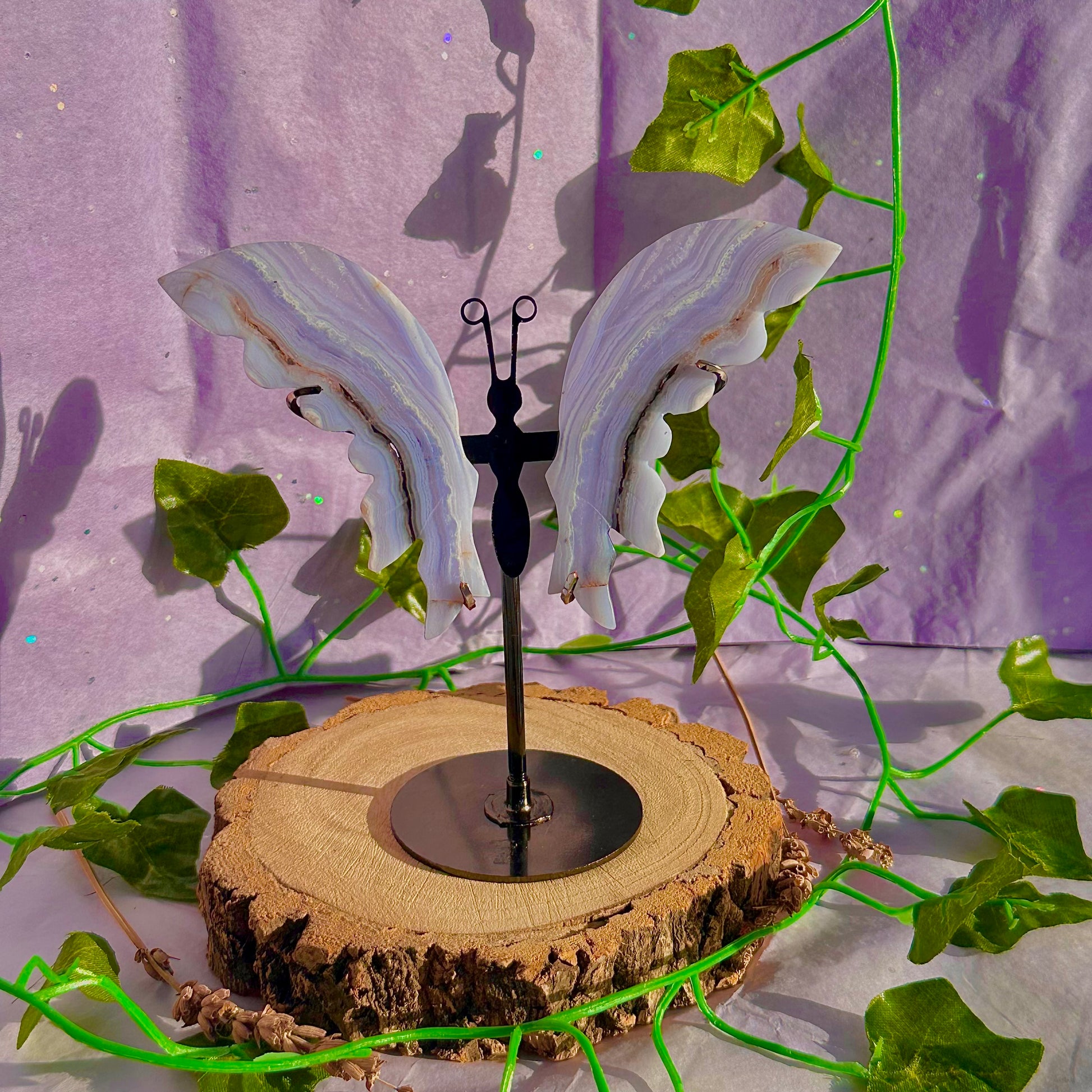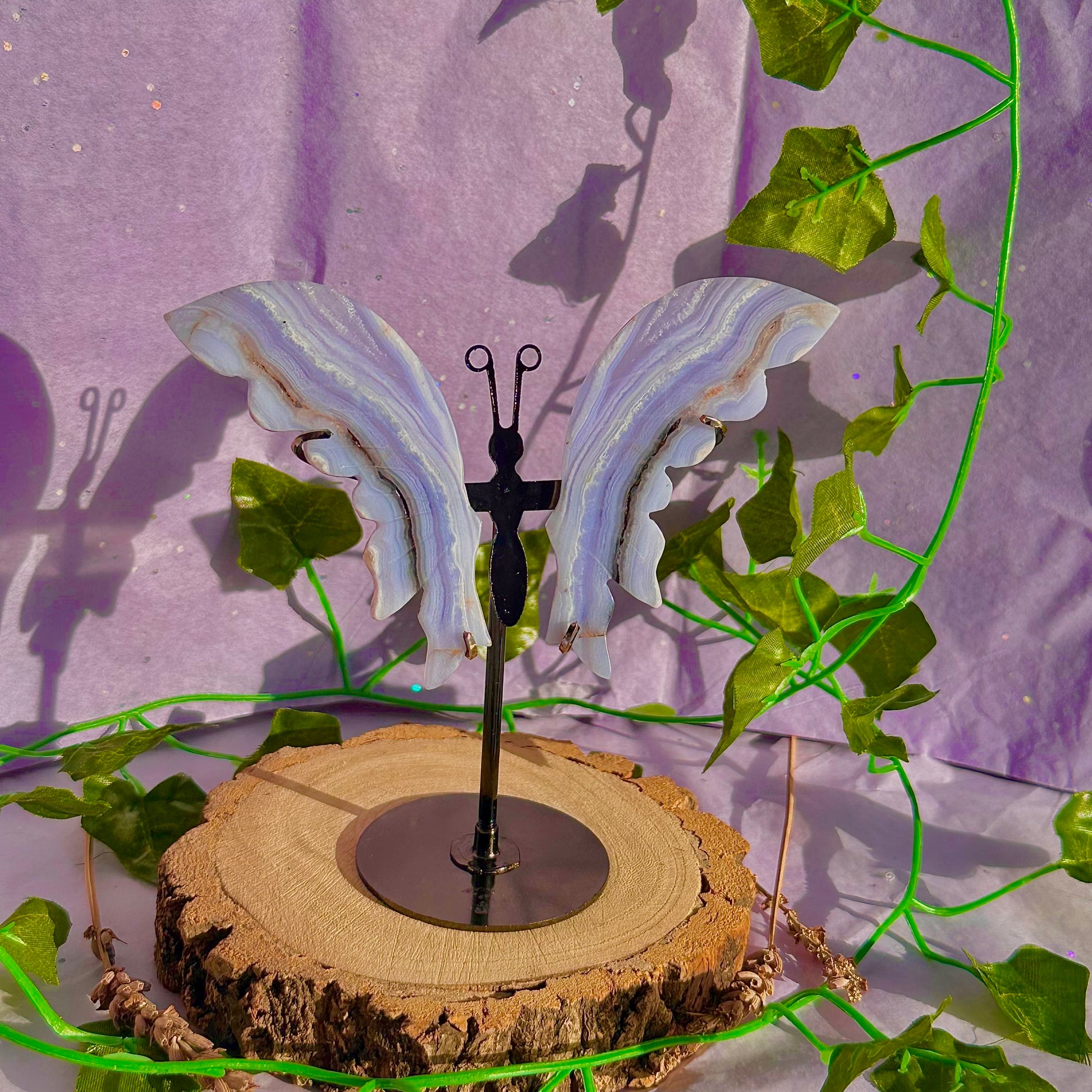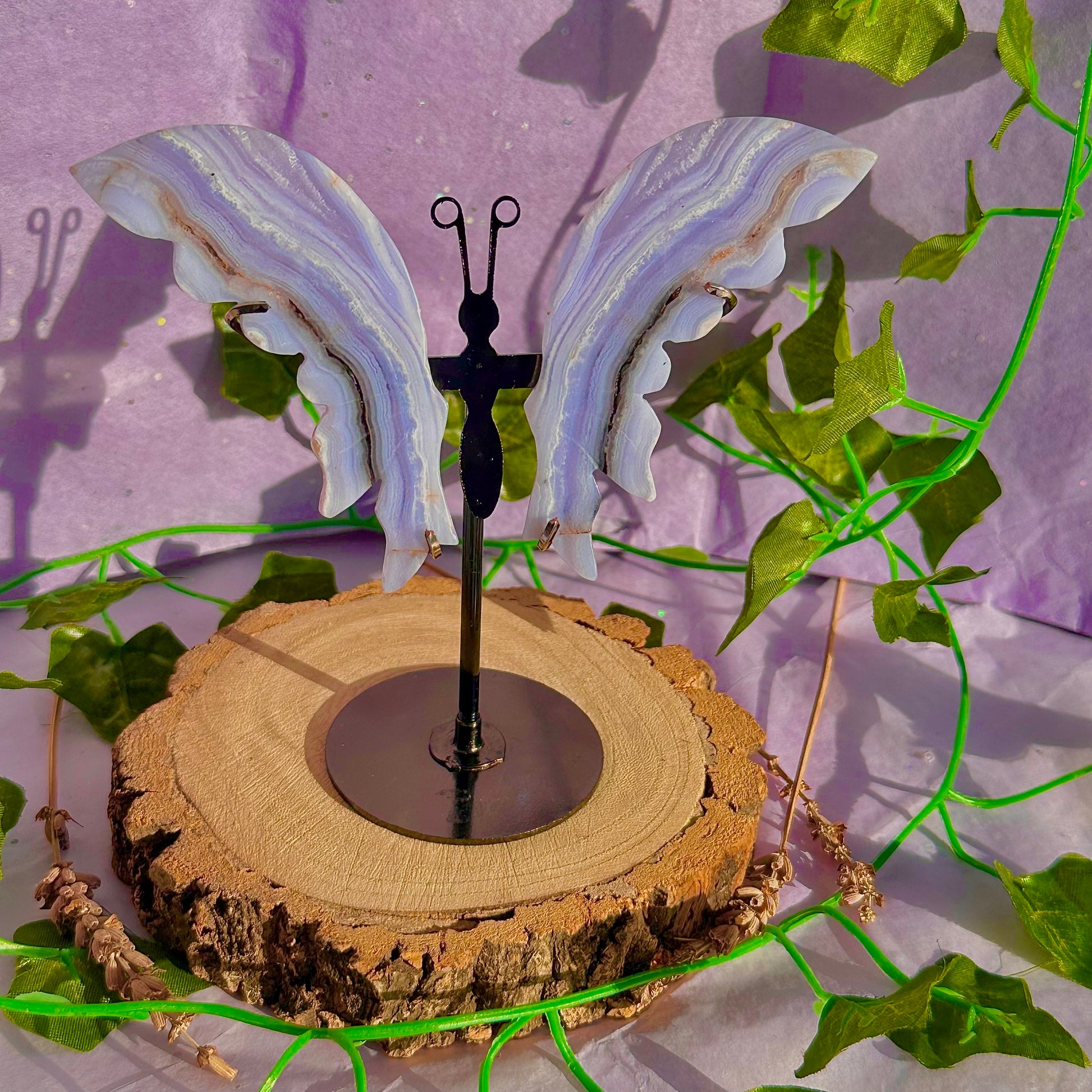 blue lace agate butterfly wings on stand B