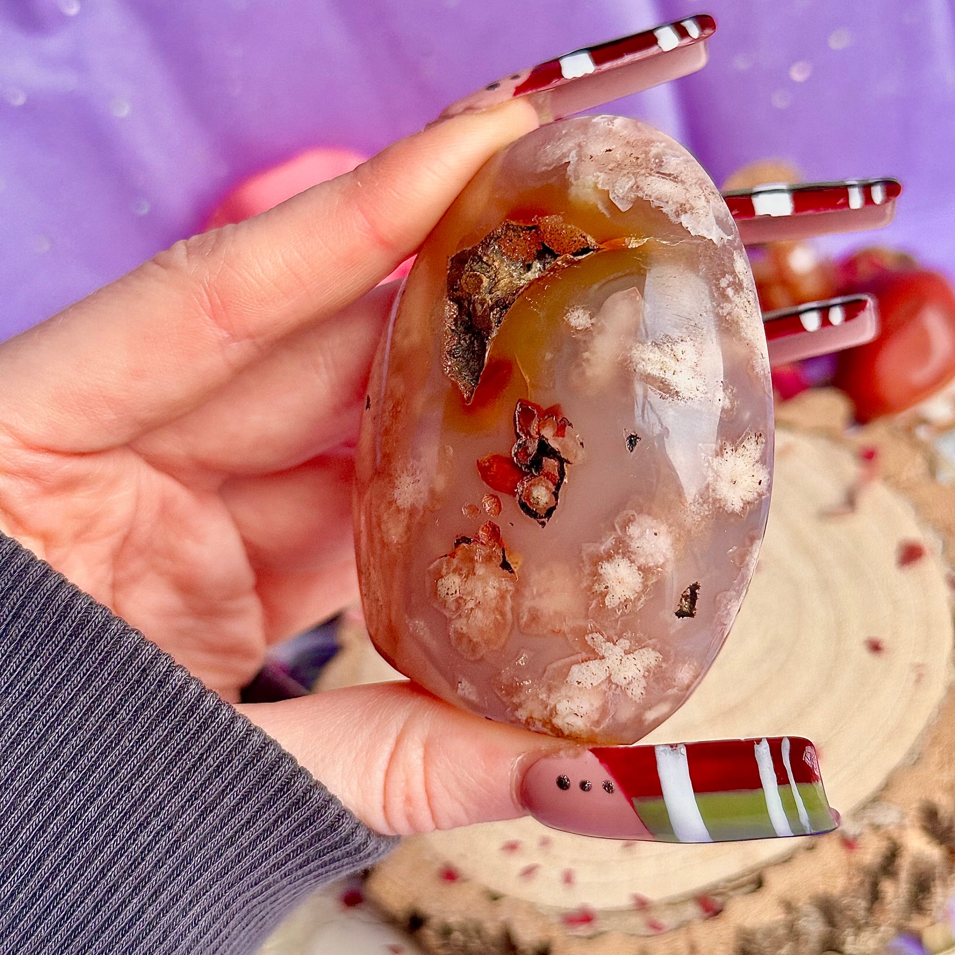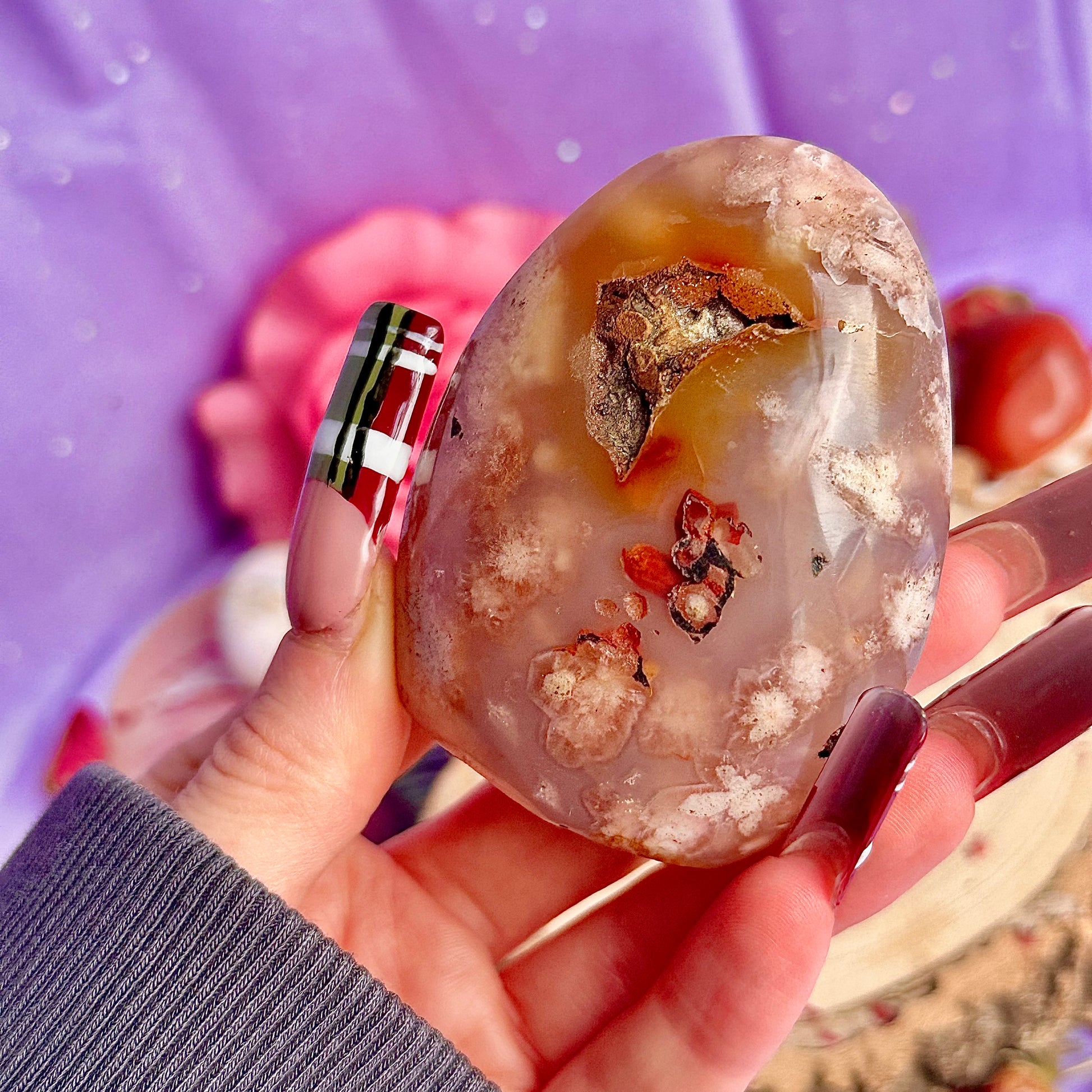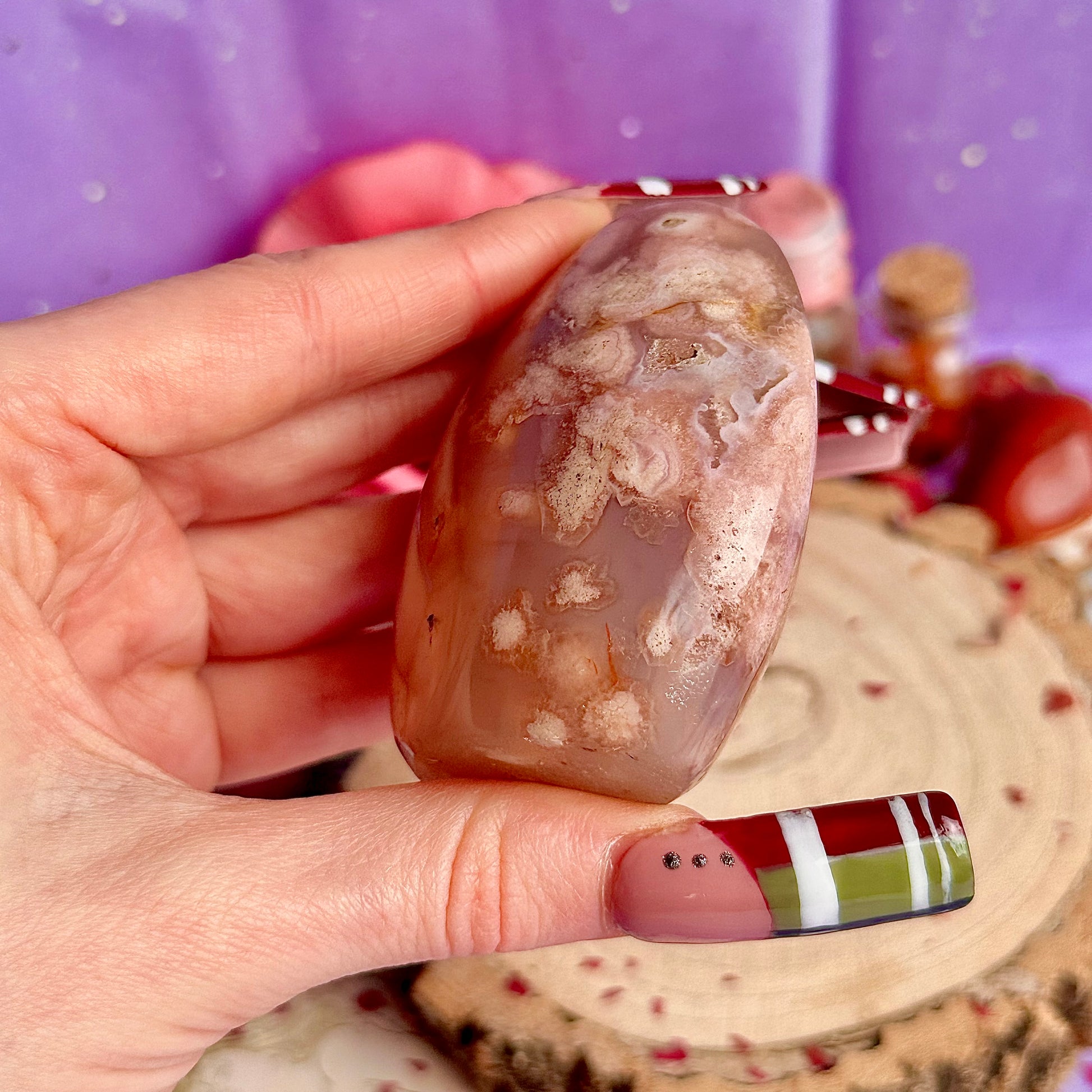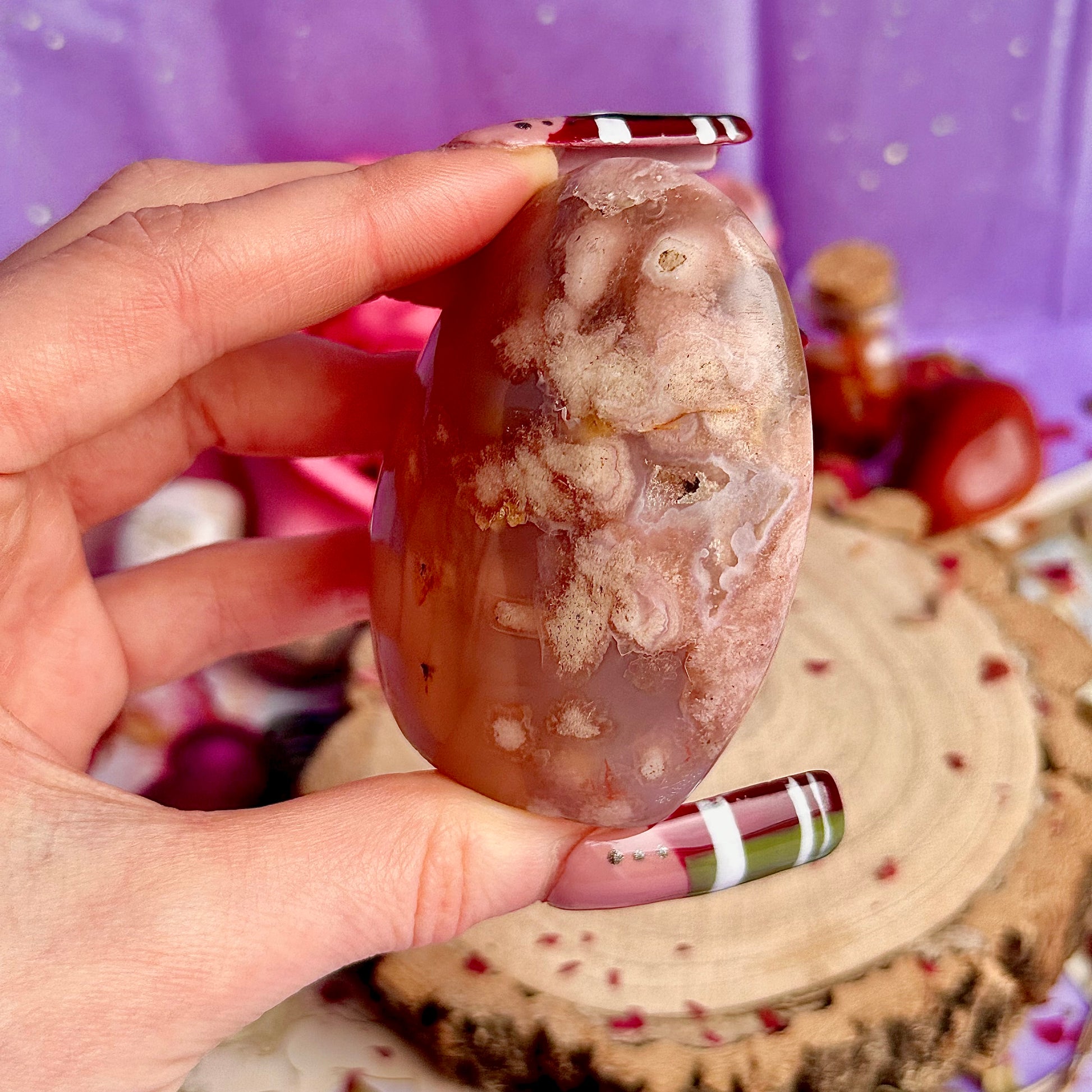 Is imbued with Divine Feminine Energy that nurtures our souls. As such, it fosters our progress, and pushes us toward our fullest potential on our journey. Known to activate, open, and heal the Heart and Root Chakras, Flower Agate opens us to inspiration, establishes inner peace, and fosters empathy.