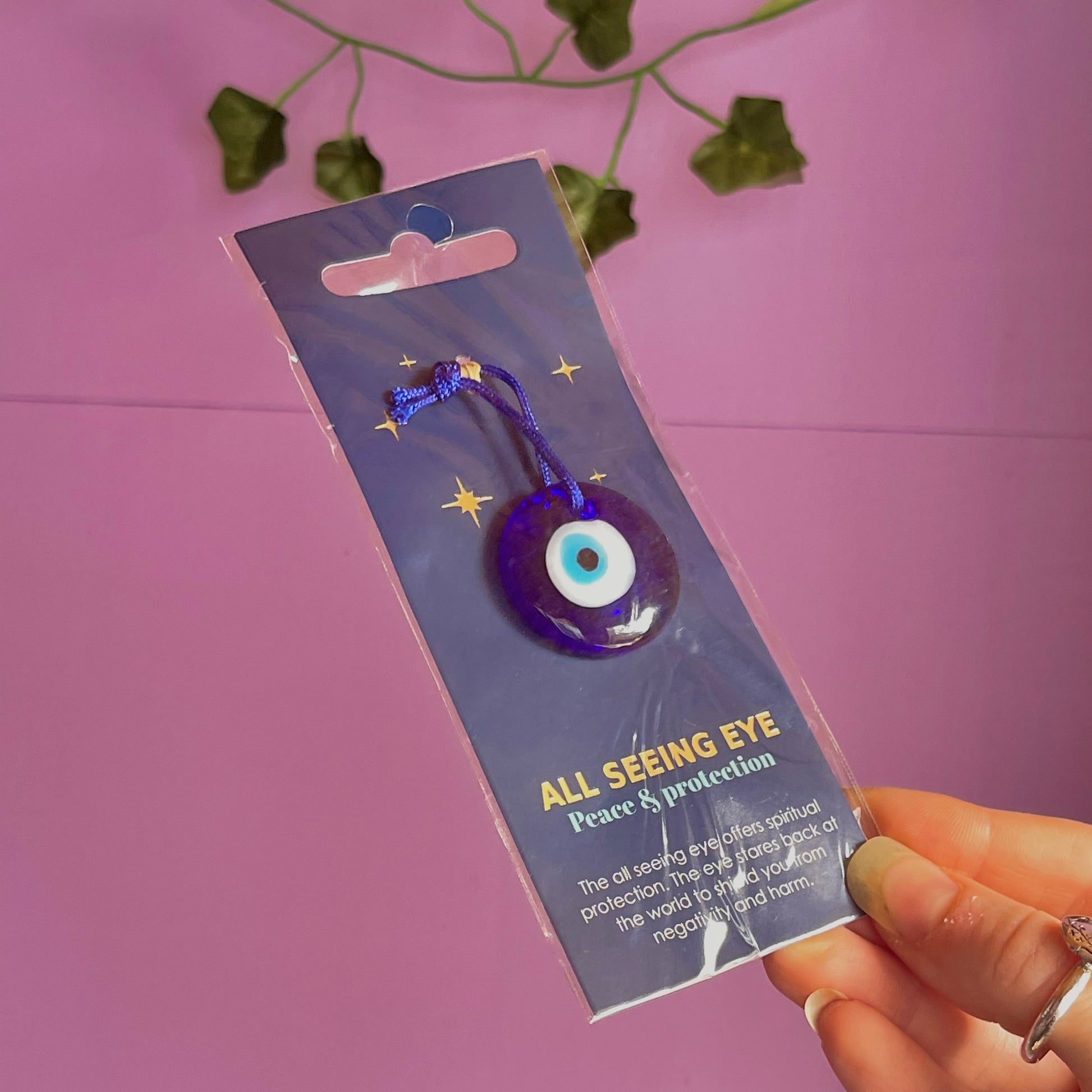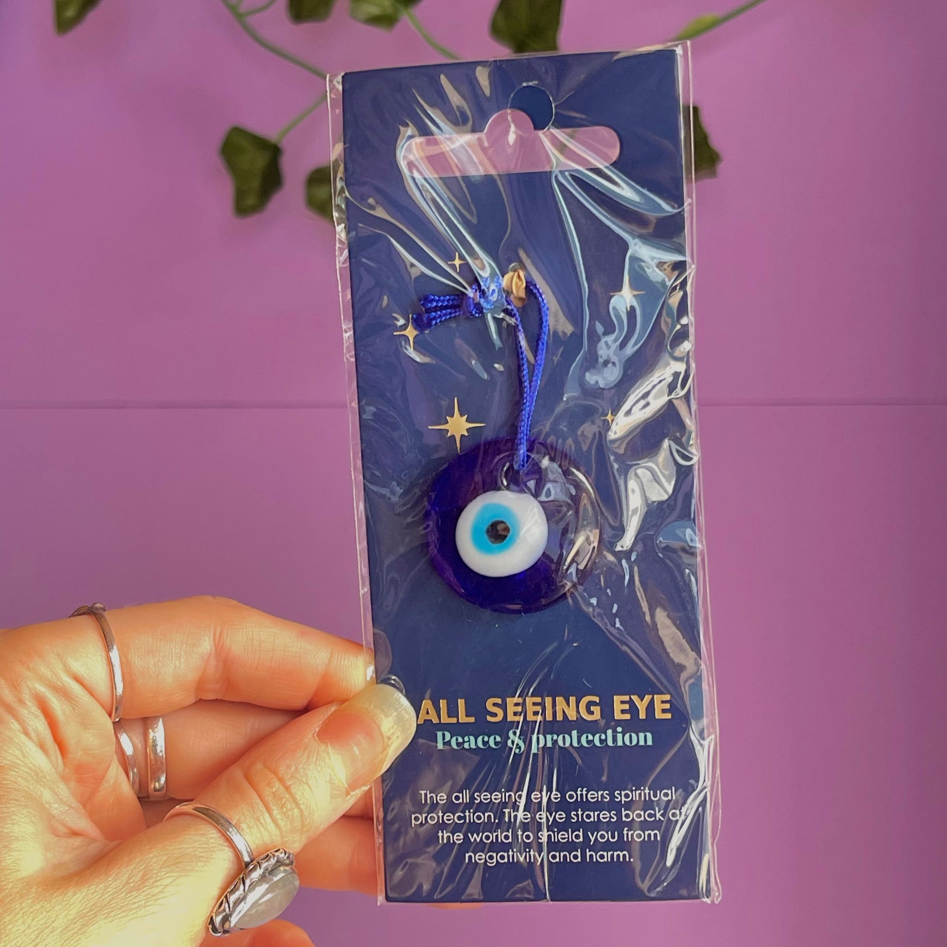 Ward off negative energies with this protective glass All Seeing Eye charm. This traditional symbol is said to offer spiritual protection by gazing back at the world and deflecting evil intentions away from the wearer.