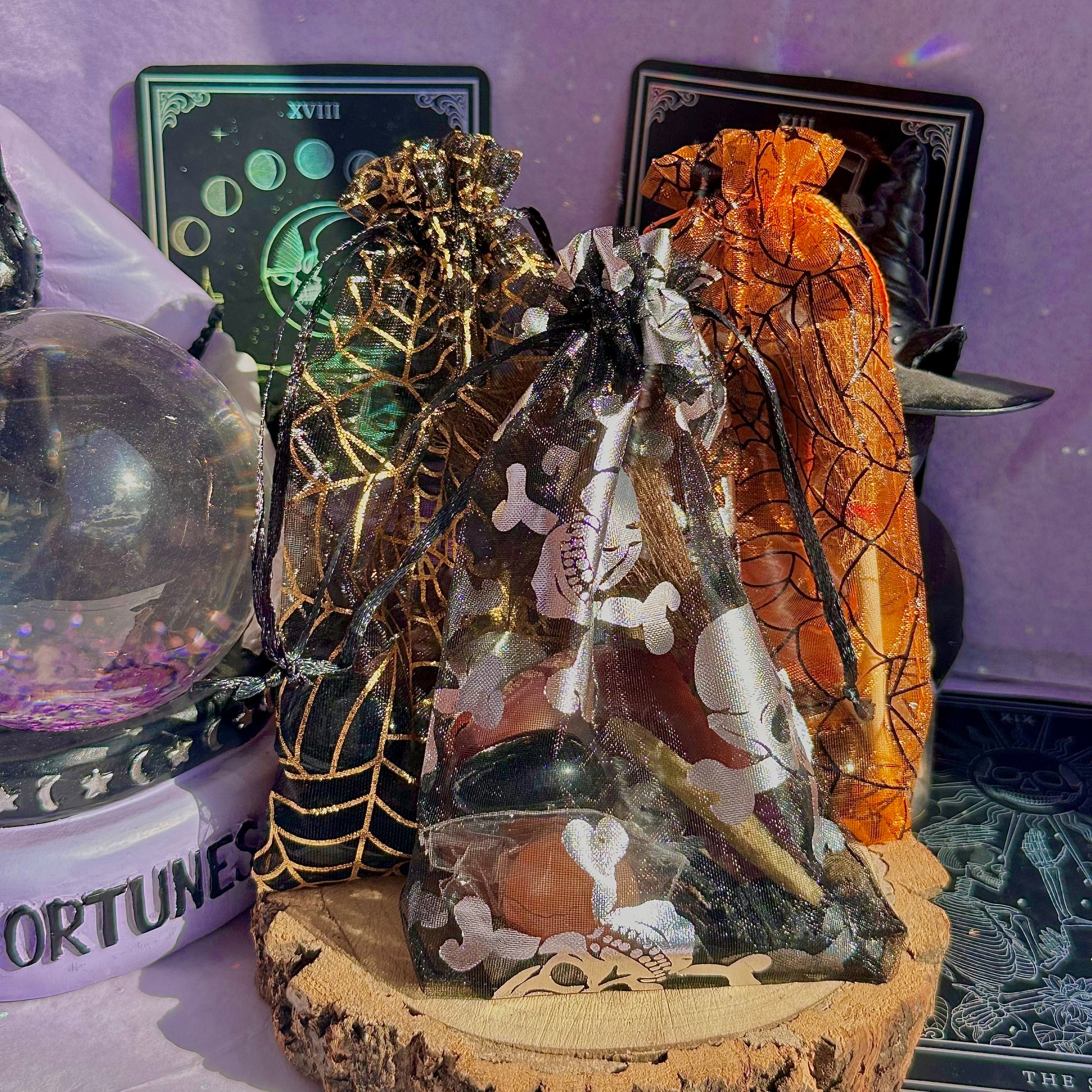 it includes: a mini broom, 3 tumbles, a spooky carving, 2 rough pieces and an extra surprise! all crystals included are perfect for hallows eve celebration, altar decor or whatever your spooky preference desires…