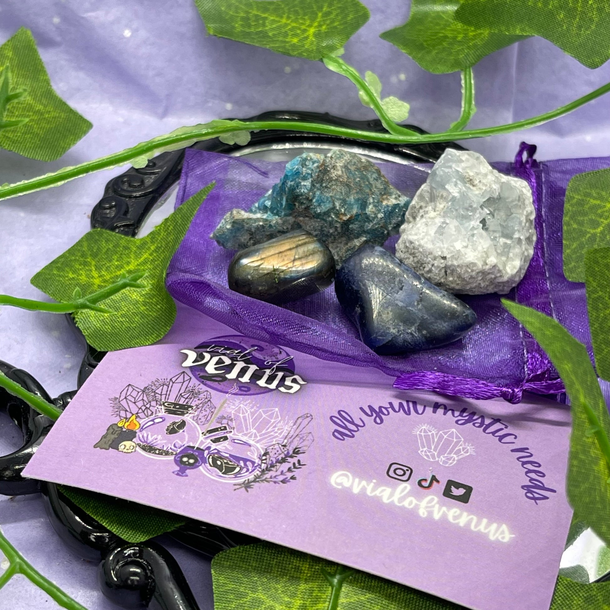 This bundle includes all the crystals best to help tap into and increase that amazing intuition of yours. Labradorite, celestine, apatite and sodalite, each have properties to help inspire you into stepping into your power, the greatest of all, your mind. With these crystals you'll have better understanding and trust in yourself to believe your gut and intuition when it sending you a message. This bundle will come with an info card describing each of the crystals properties and how they will help you and your intuition.