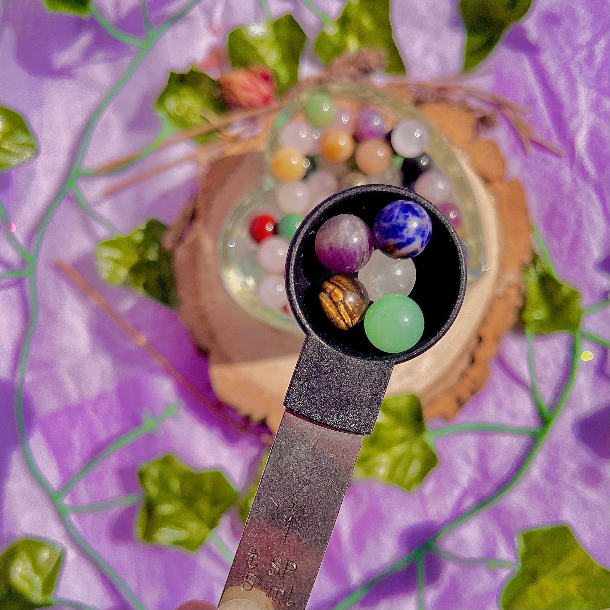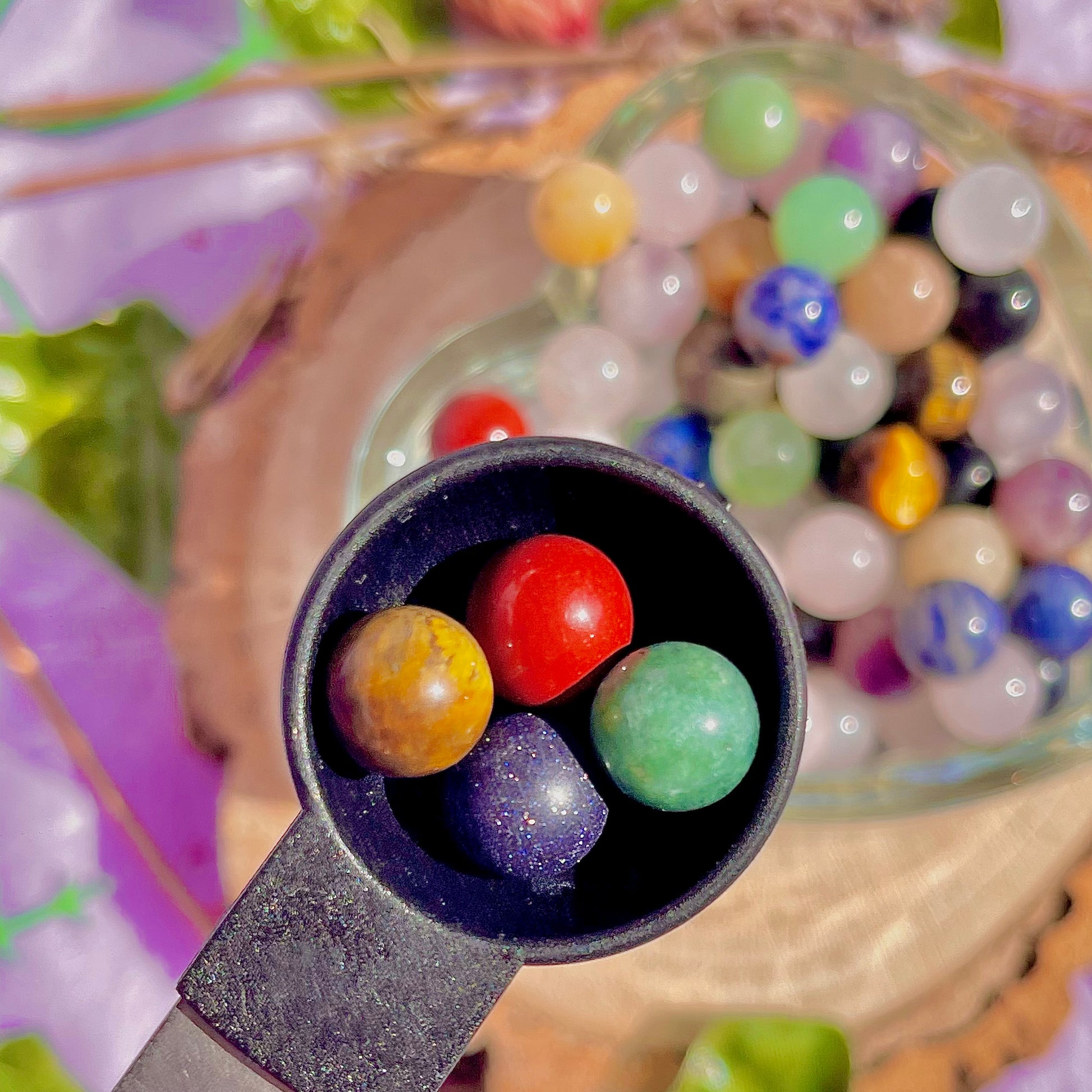 get 4-5 spheres a scoop! includes a mix of all your favourite crystals from jaspers, quartz, fluorite, agates and more in a stunning baby sphere form! * may include some man made crystals