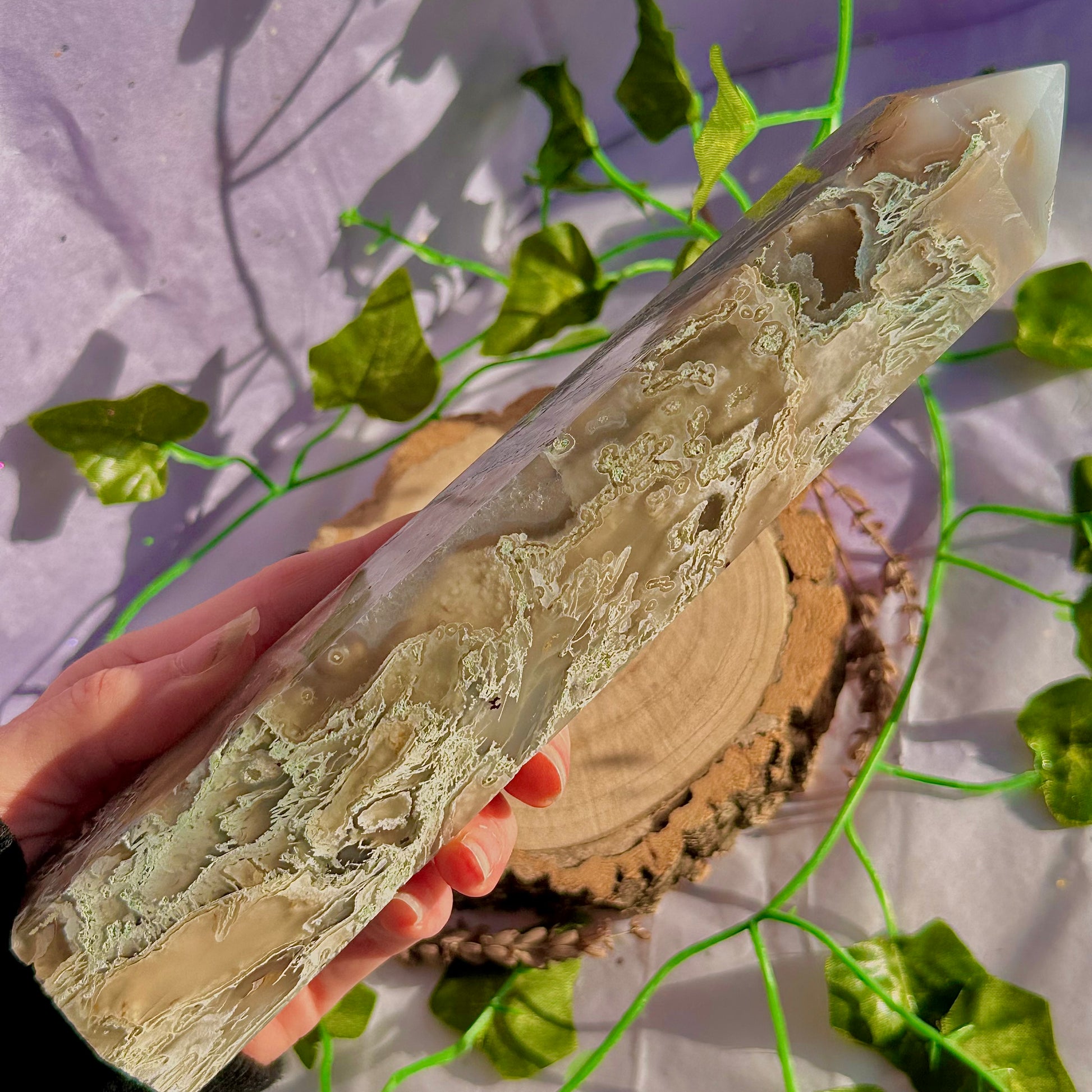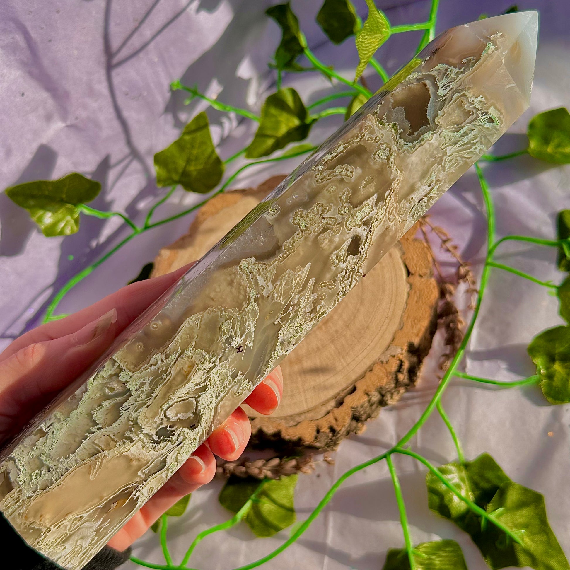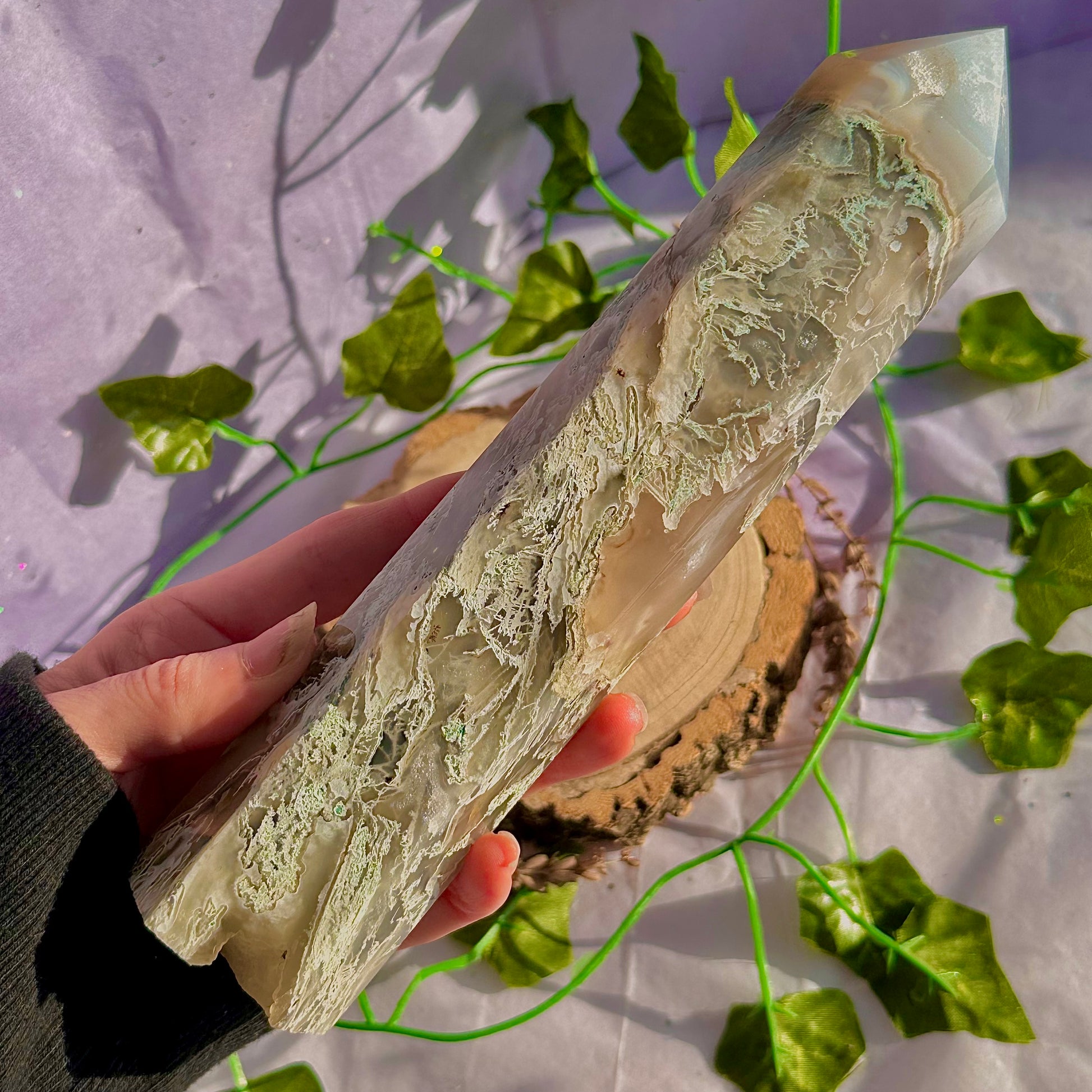 Over 600g of pure beautiful high quality moss agate, a stunning statement perfect for any crystal lover, especially moss agate lovers!!