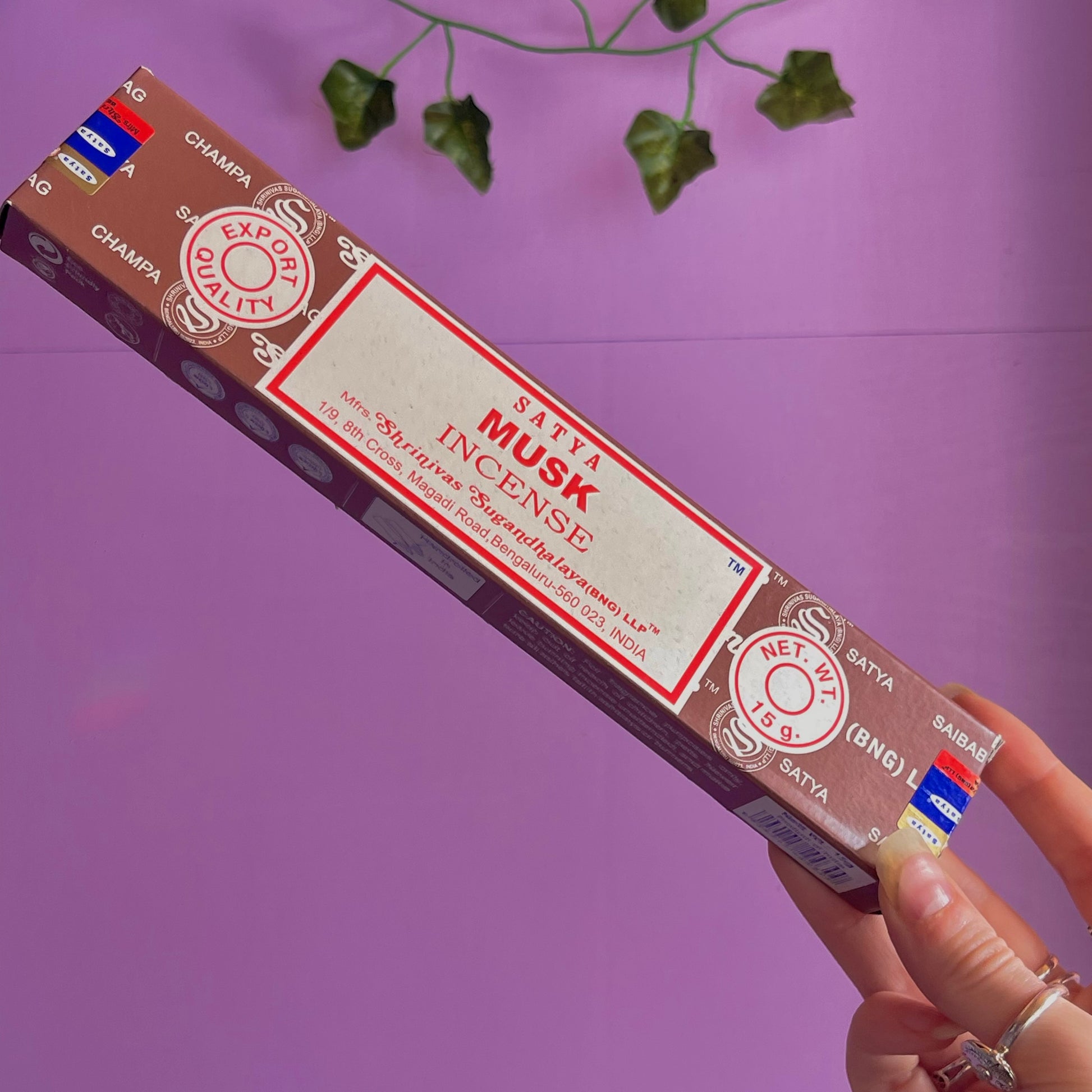 Satya is my fav brand of incense— ethical, top quality, cruelty free, eco friendly and hand rolled in India 🇮🇳 smells amazing and perfect for cleansing your spaces, self and crystals! ~ more scents available