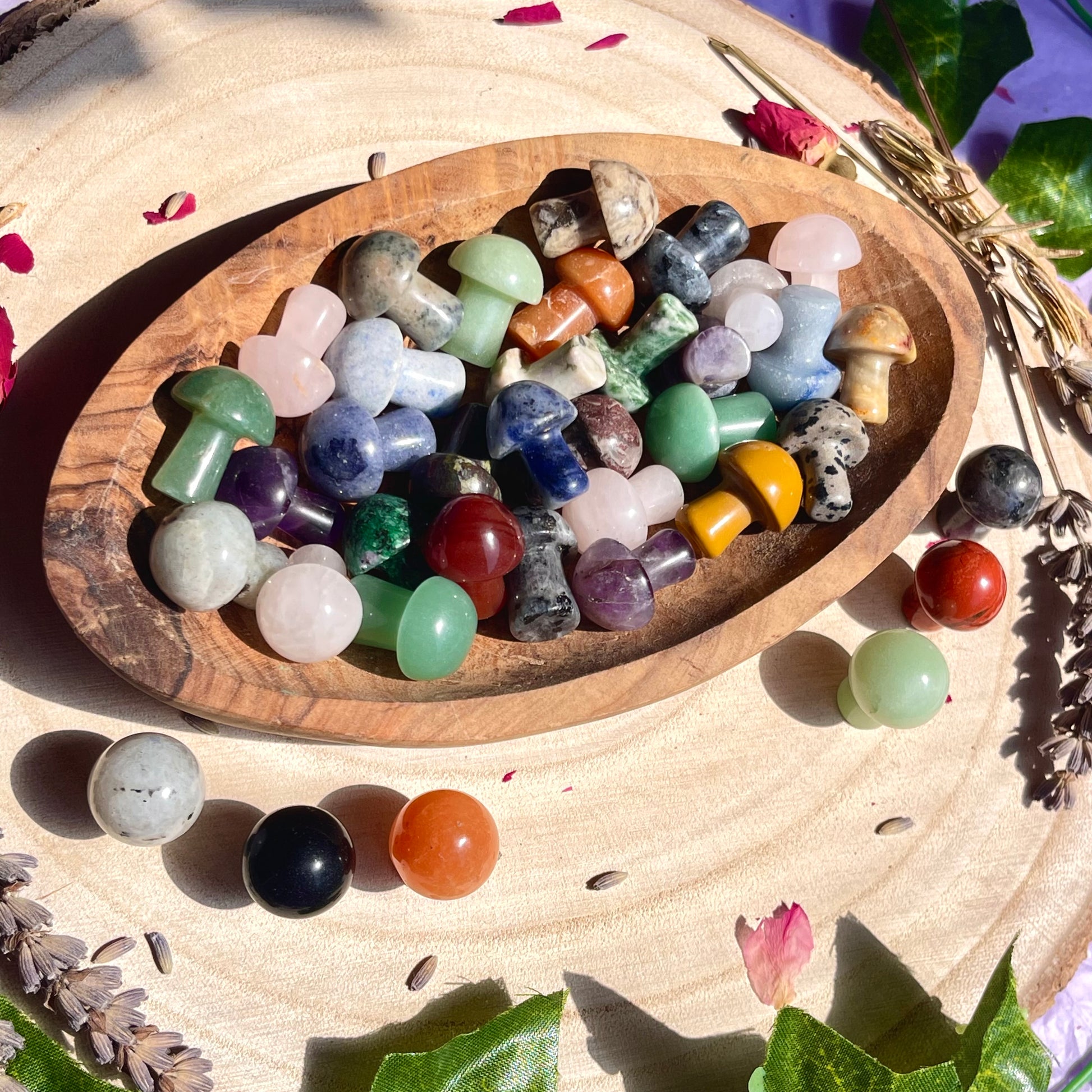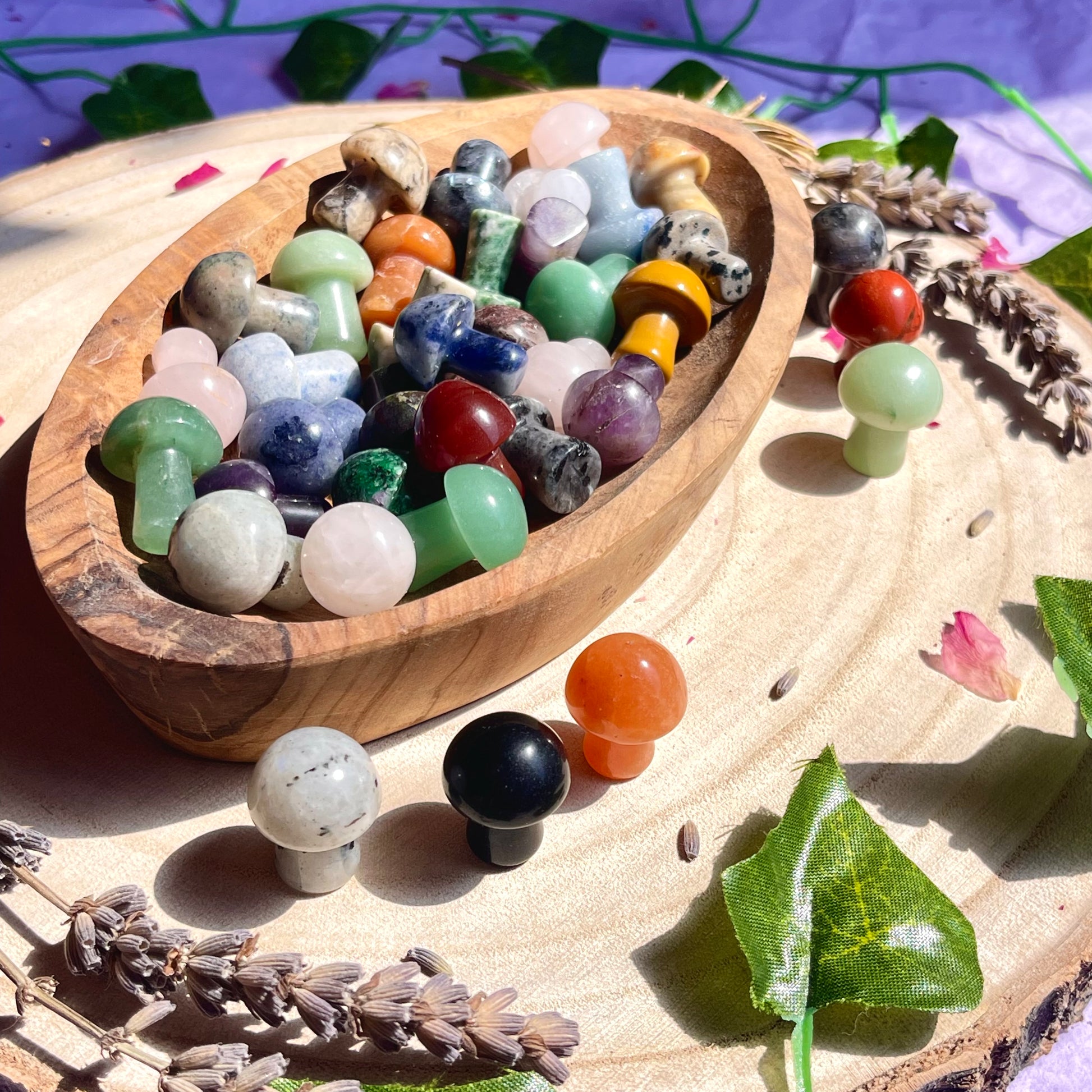 so CUTE🍄🍄 a mix of all your fav crystals ; rose quartz, aventurine, jasper, agate, opalite, quartz, labradorite, moss agate, flower agate and more✨ *will be chosen intuitively for a surprise/mystery!!