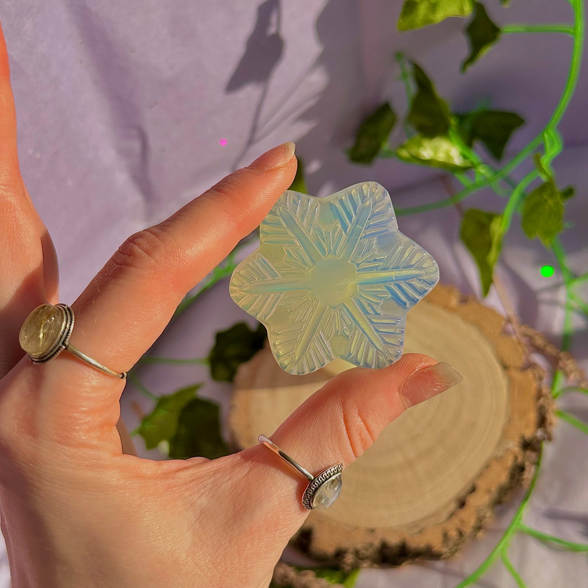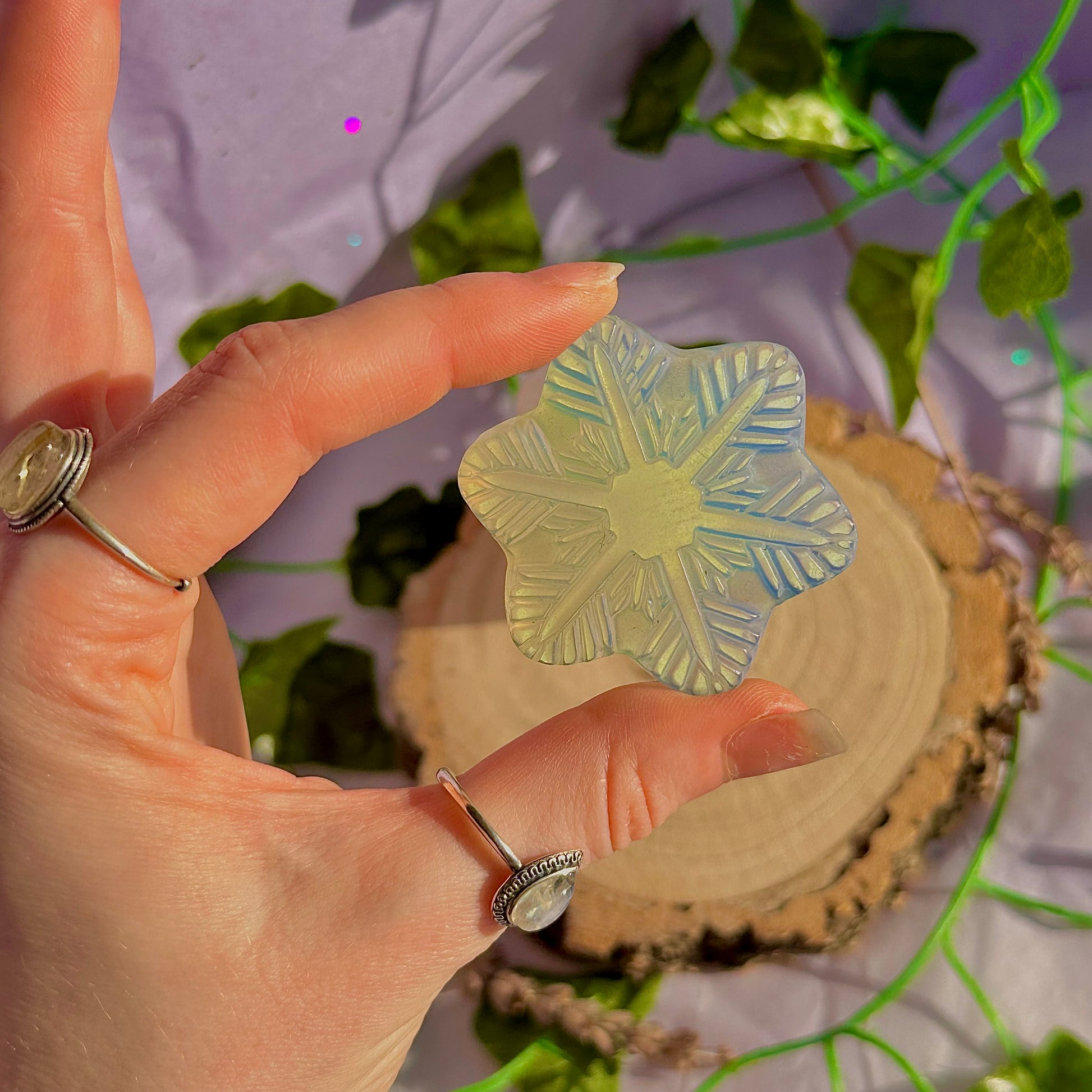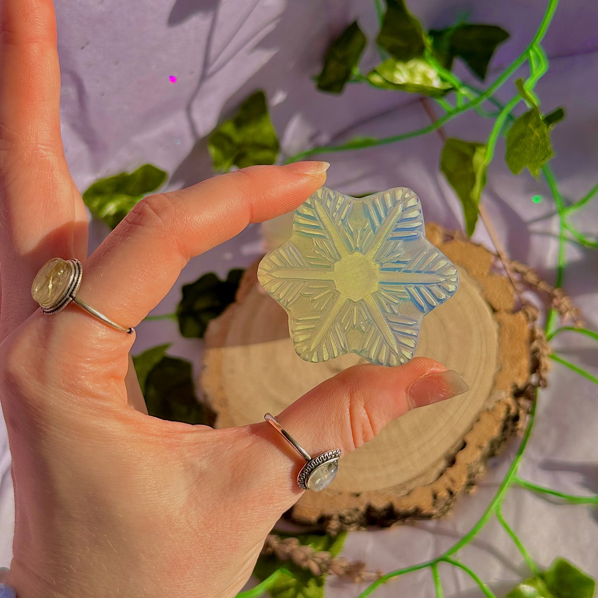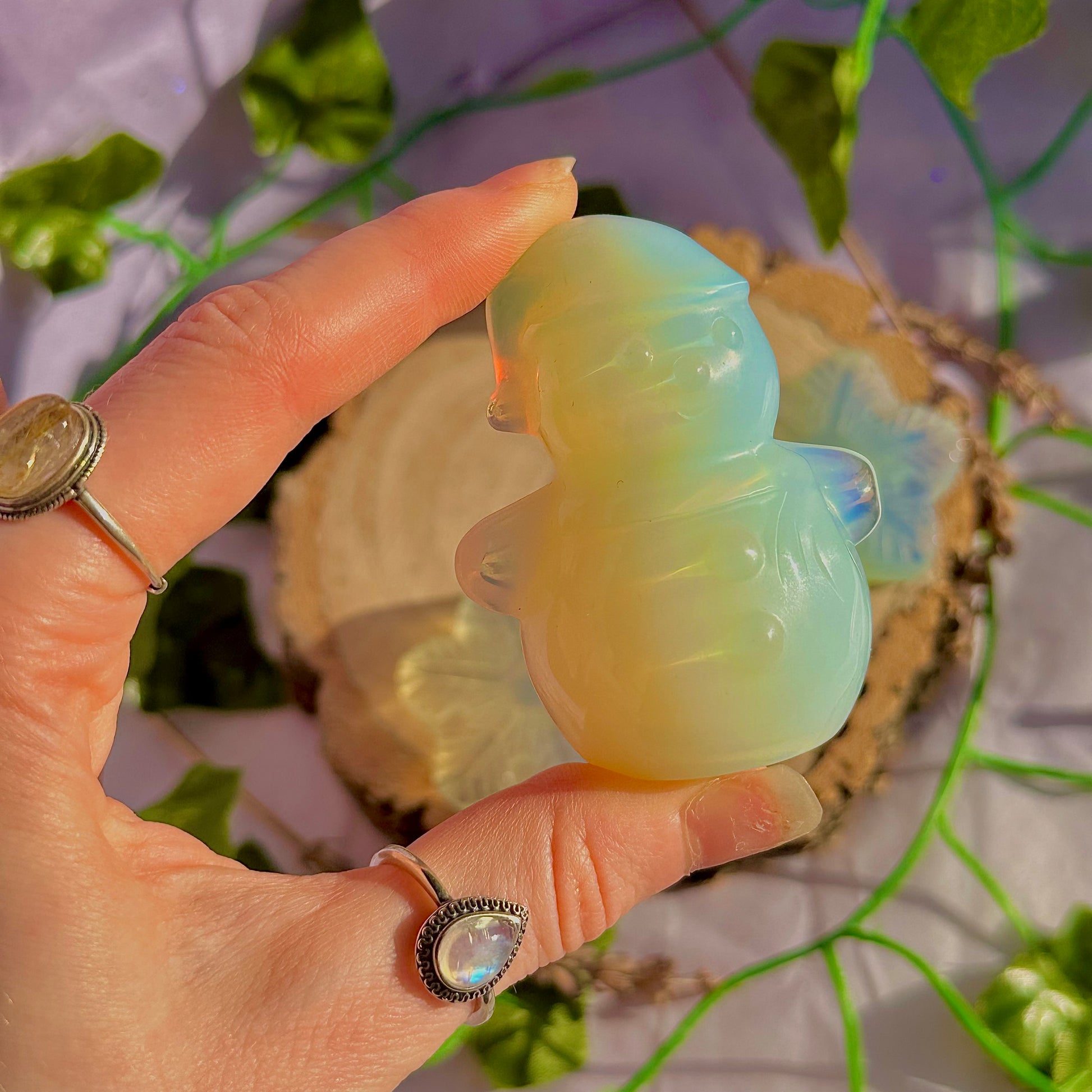 Is a synthetic crystal, often resembling opal, and is associated with positive energy, emotional healing and spiritual connection. It's believed to foster a childlike wonder, encourage optimism, and help navigate life's transitions. Opalite is also linked to enhancing communication, particularly on a spiritual level, and is said to connect individuals with the spirit world.