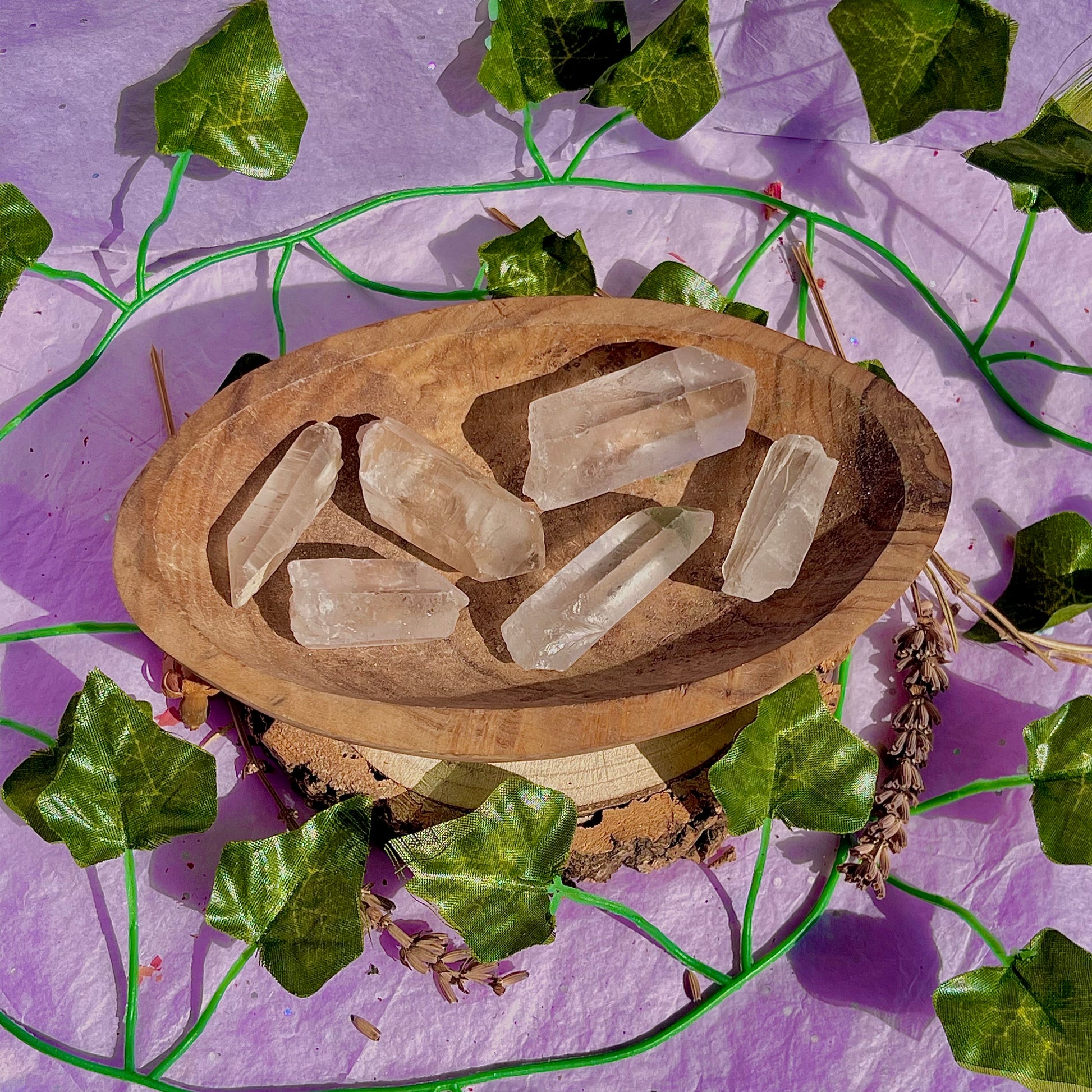 - sunlight; leave your crystal in sunlight (outside or by a window) just not for longer than about 15-20mins as can dull the colour and quartz especially can focus the suns ray and may become a fire risk!