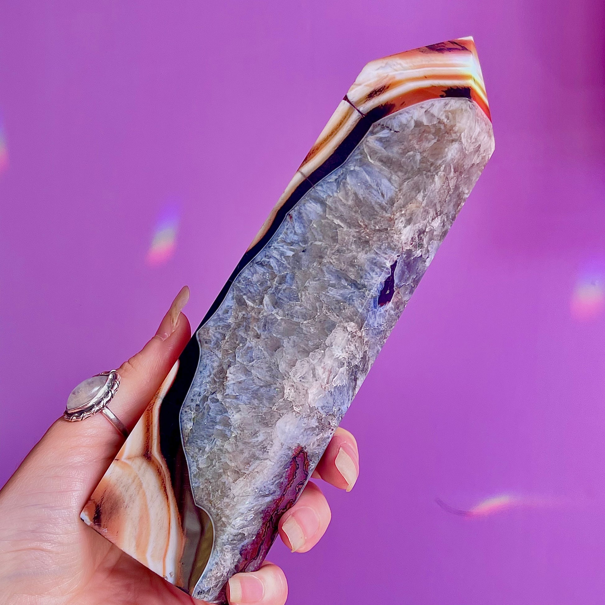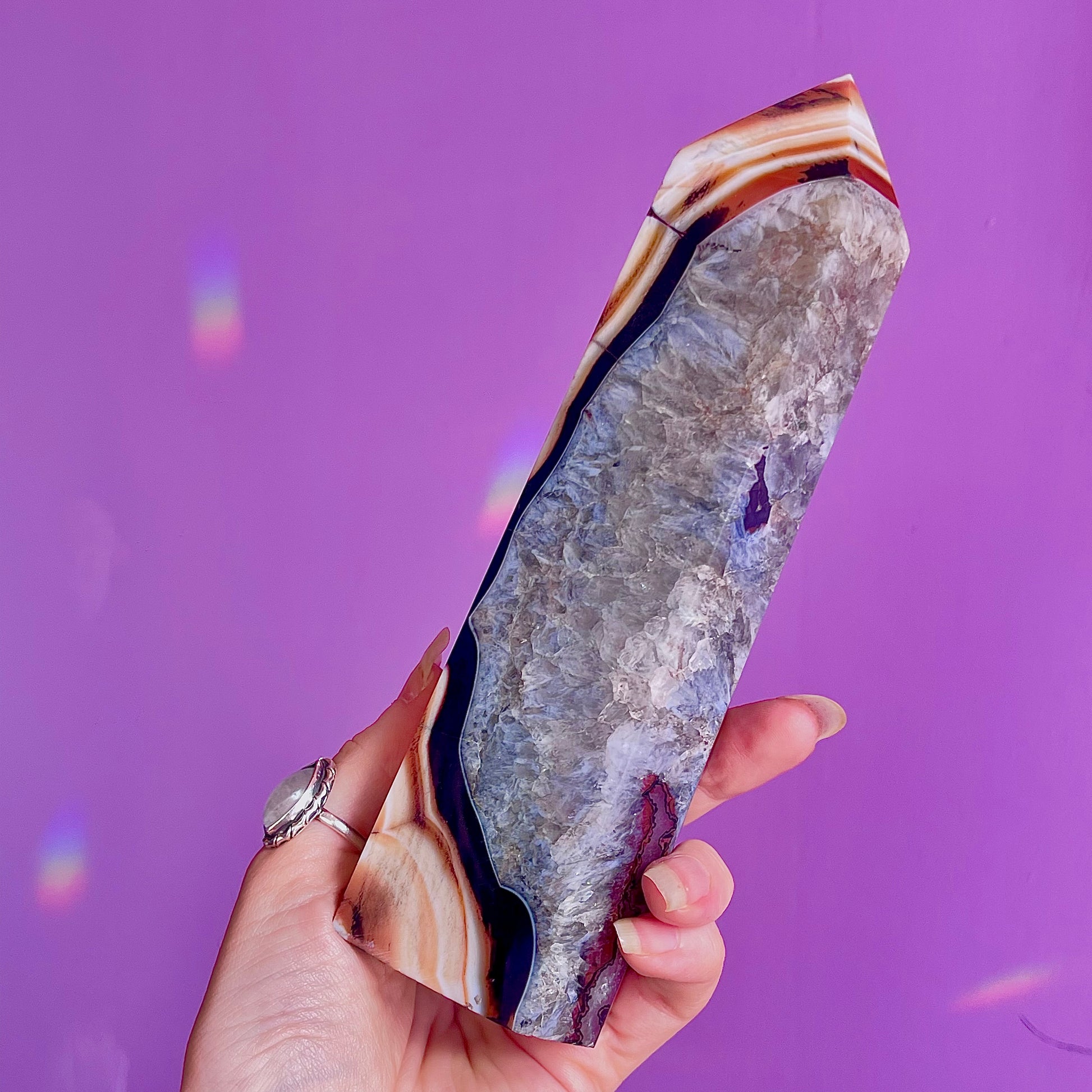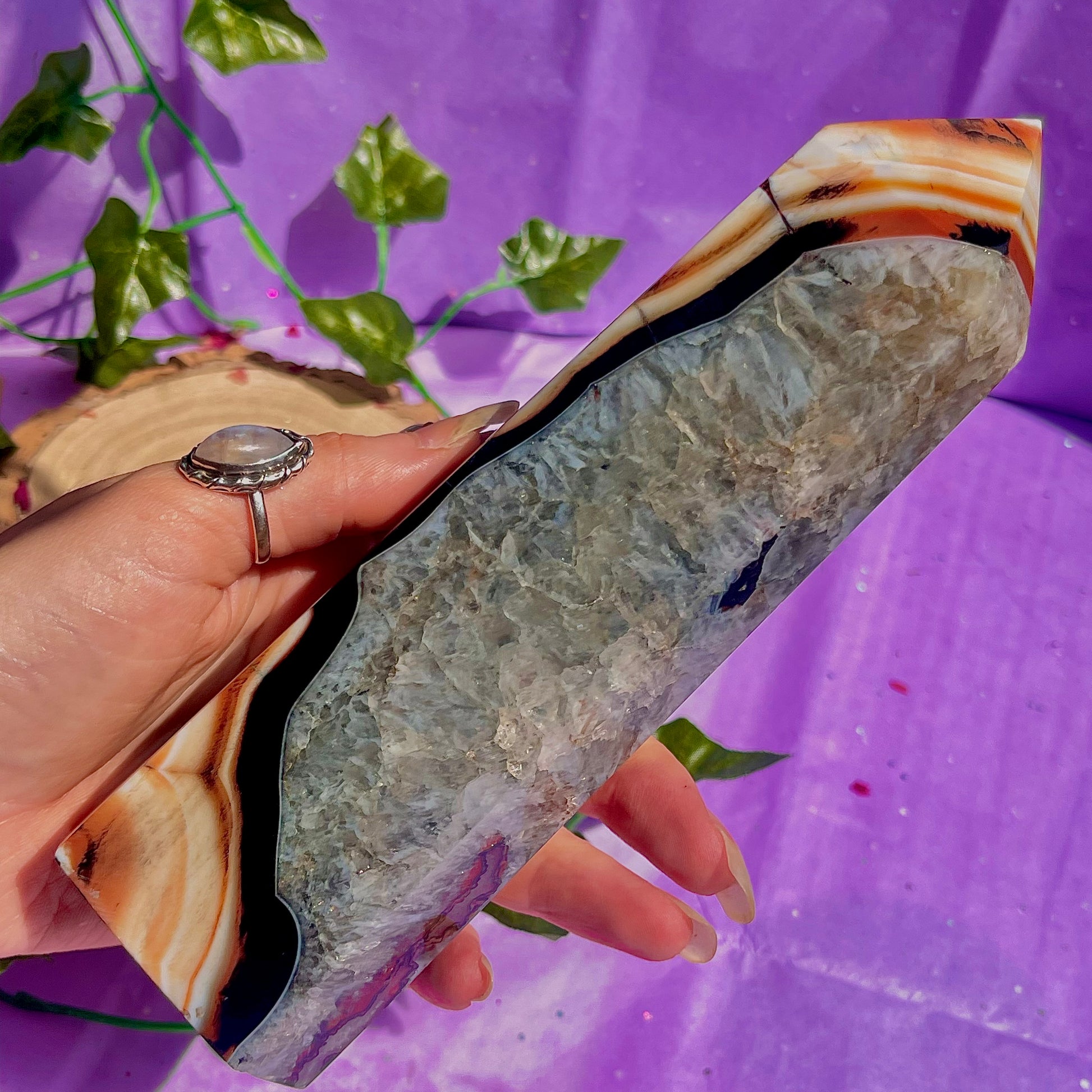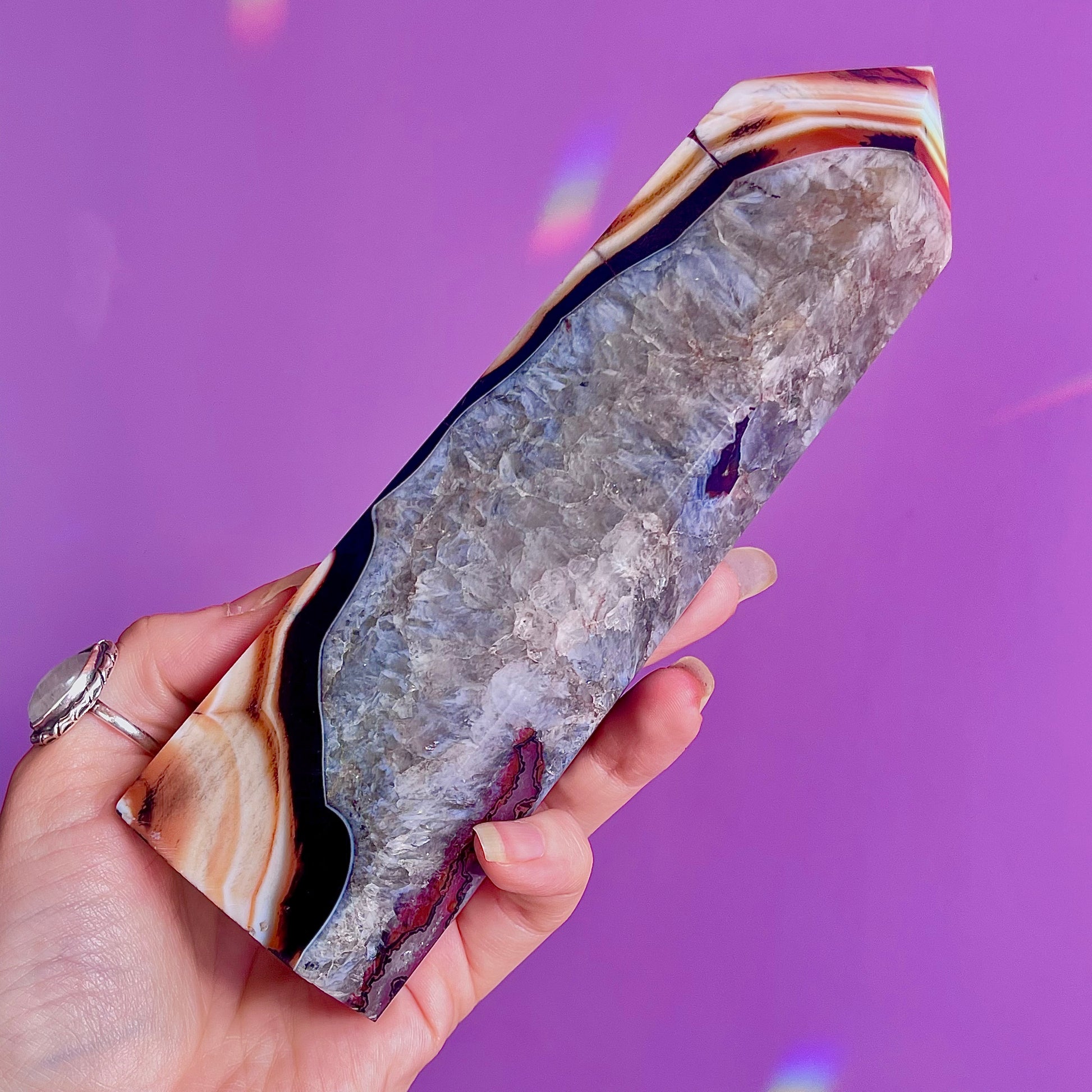 - crystal cleansing; place your crystal on a quartz or amethyst cluster, or inside a geode to cleanse; also placing them on top of selenite (satin spar) or around or using a selenite wand to direct the intention of cleansing