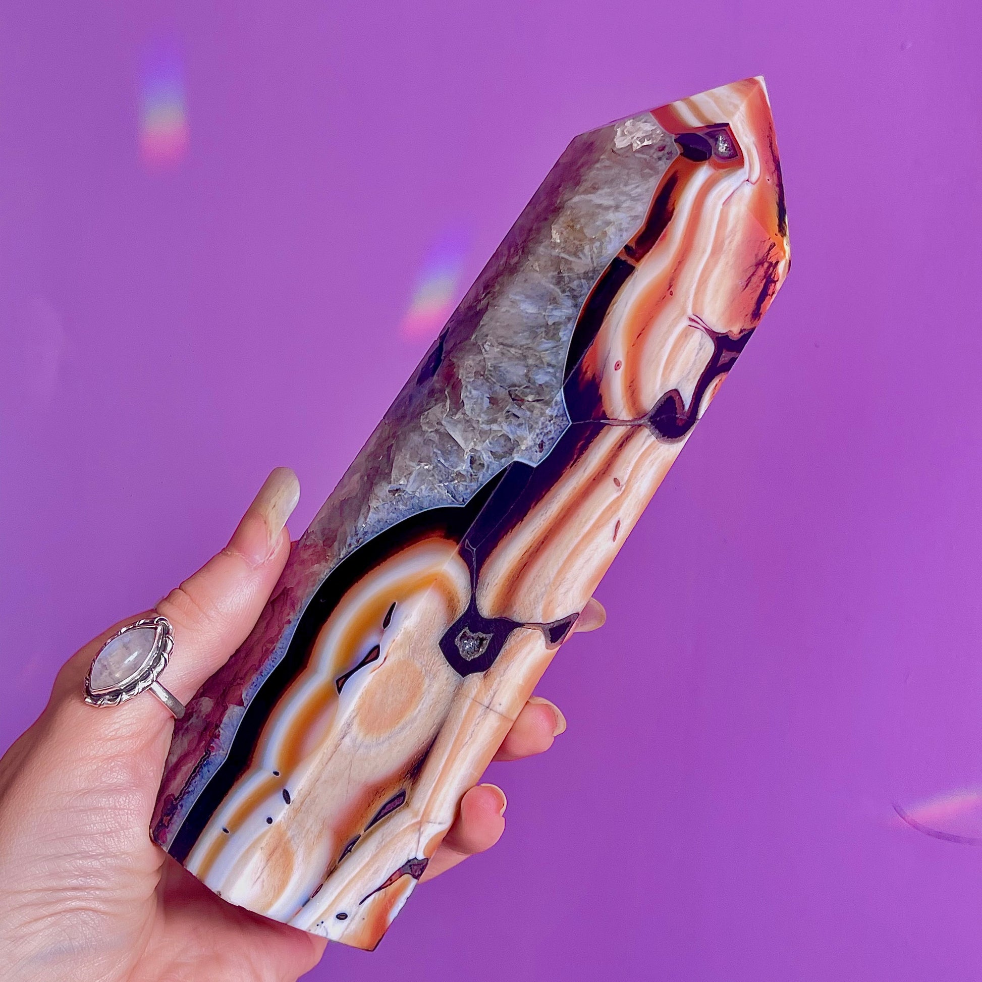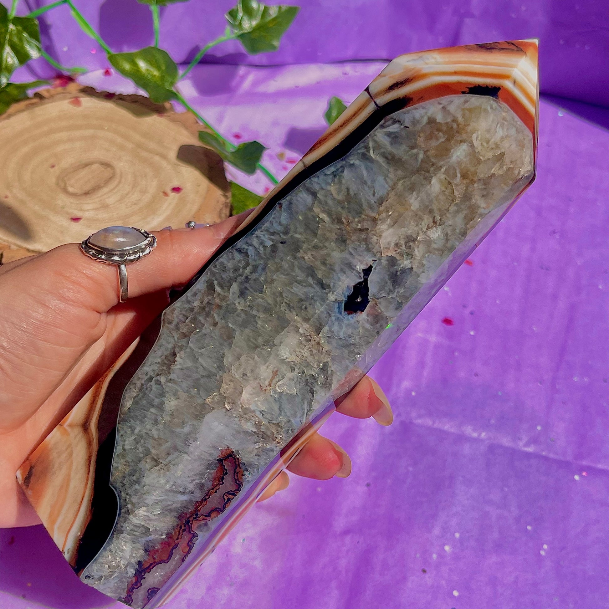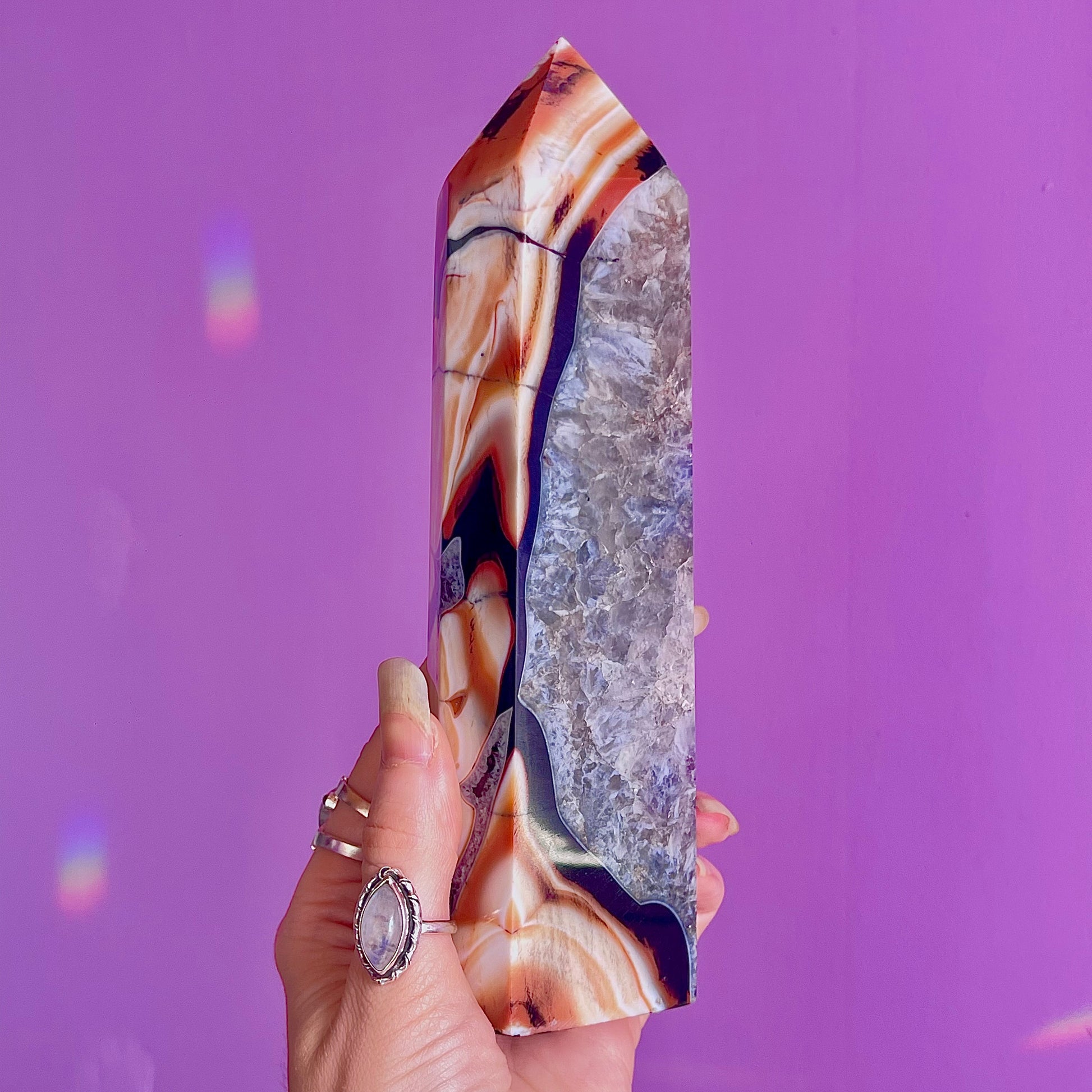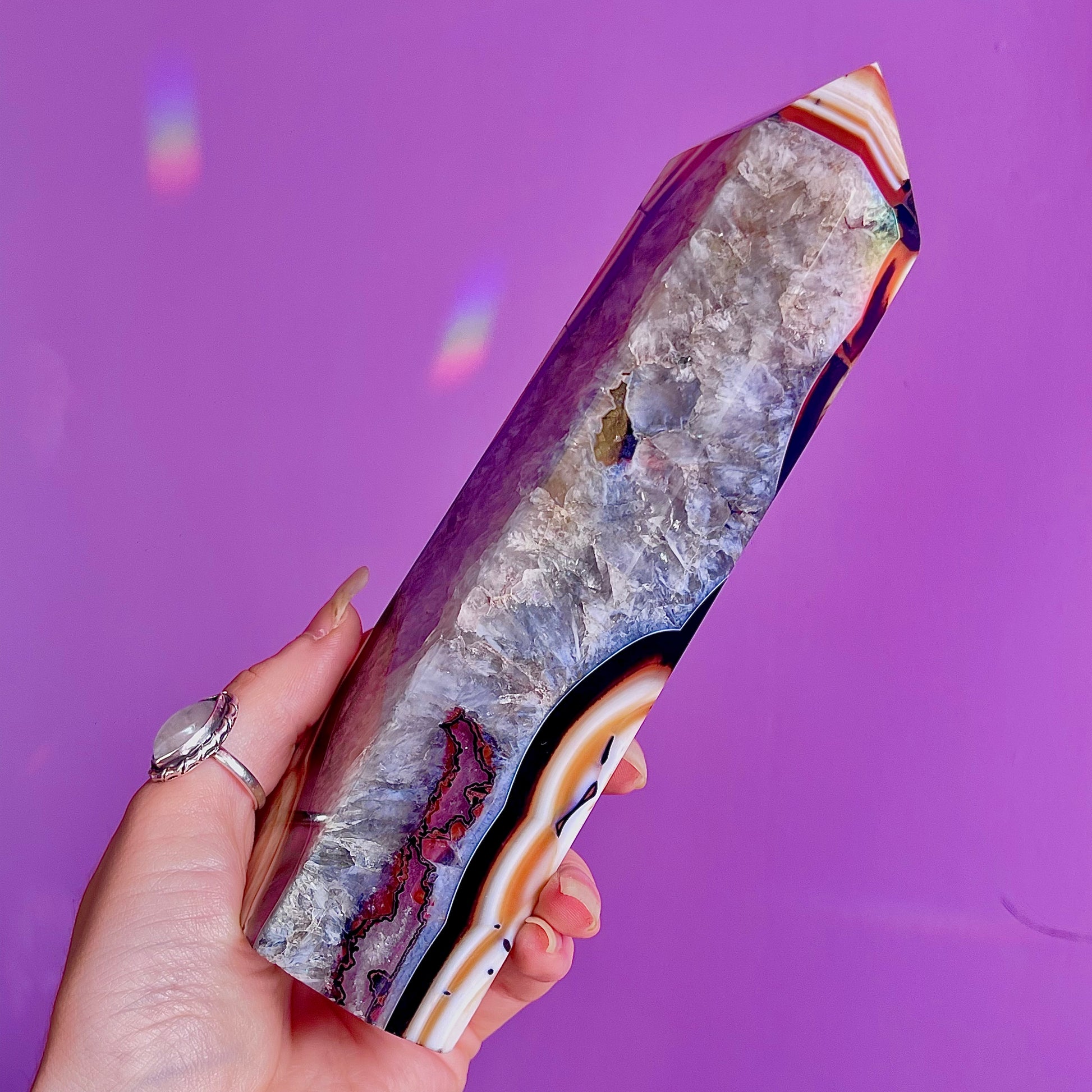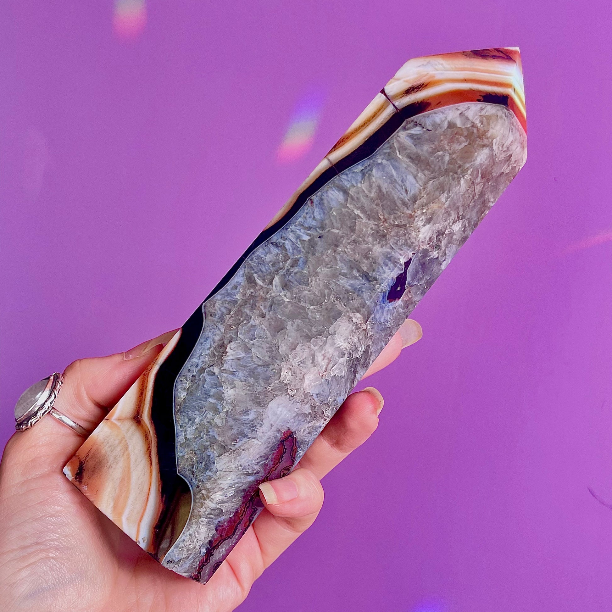 - crystal cleansing; place your crystal on a quartz or amethyst cluster, or inside a geode to cleanse; also placing them on top of selenite (satin spar) or around or using a selenite wand to direct the intention of cleansing