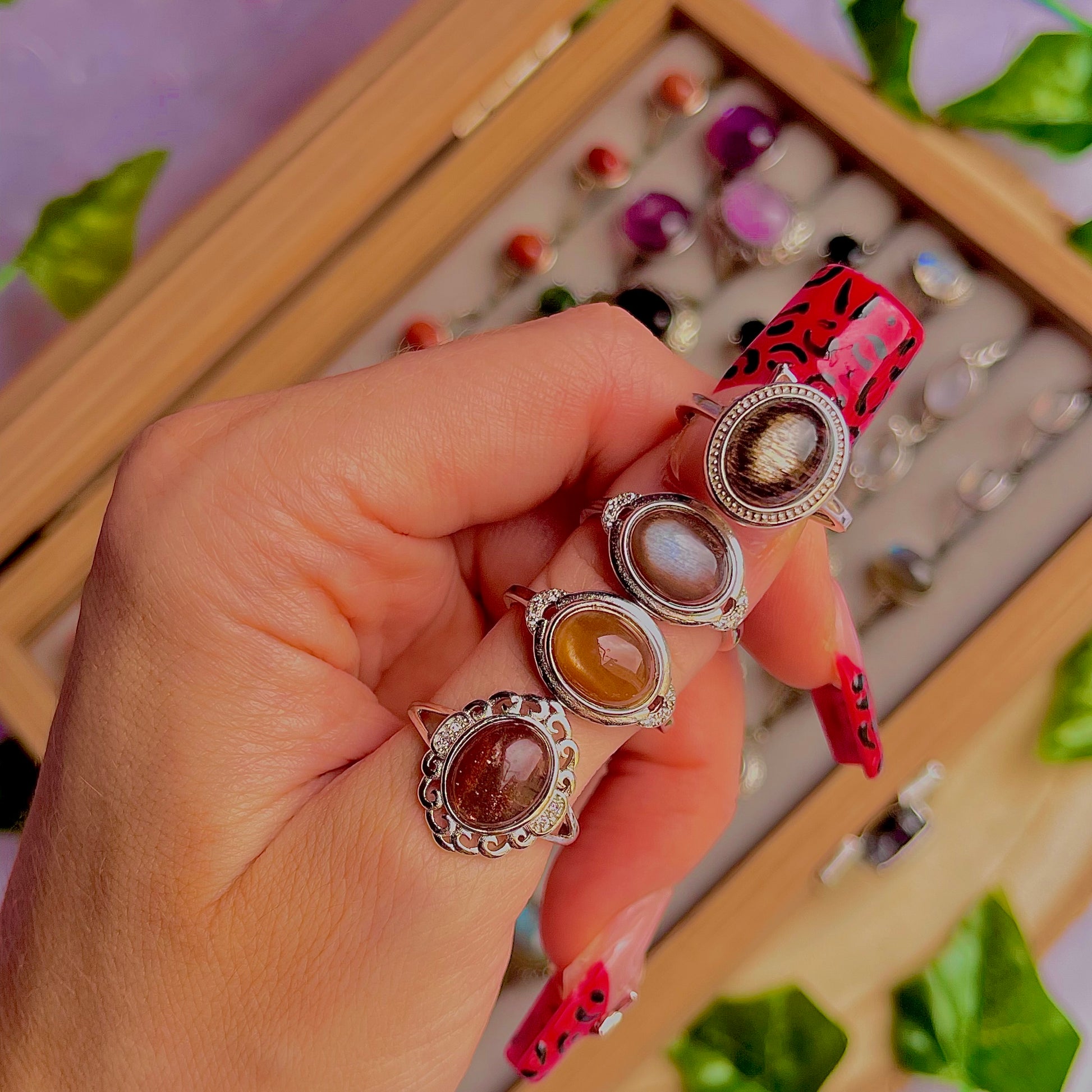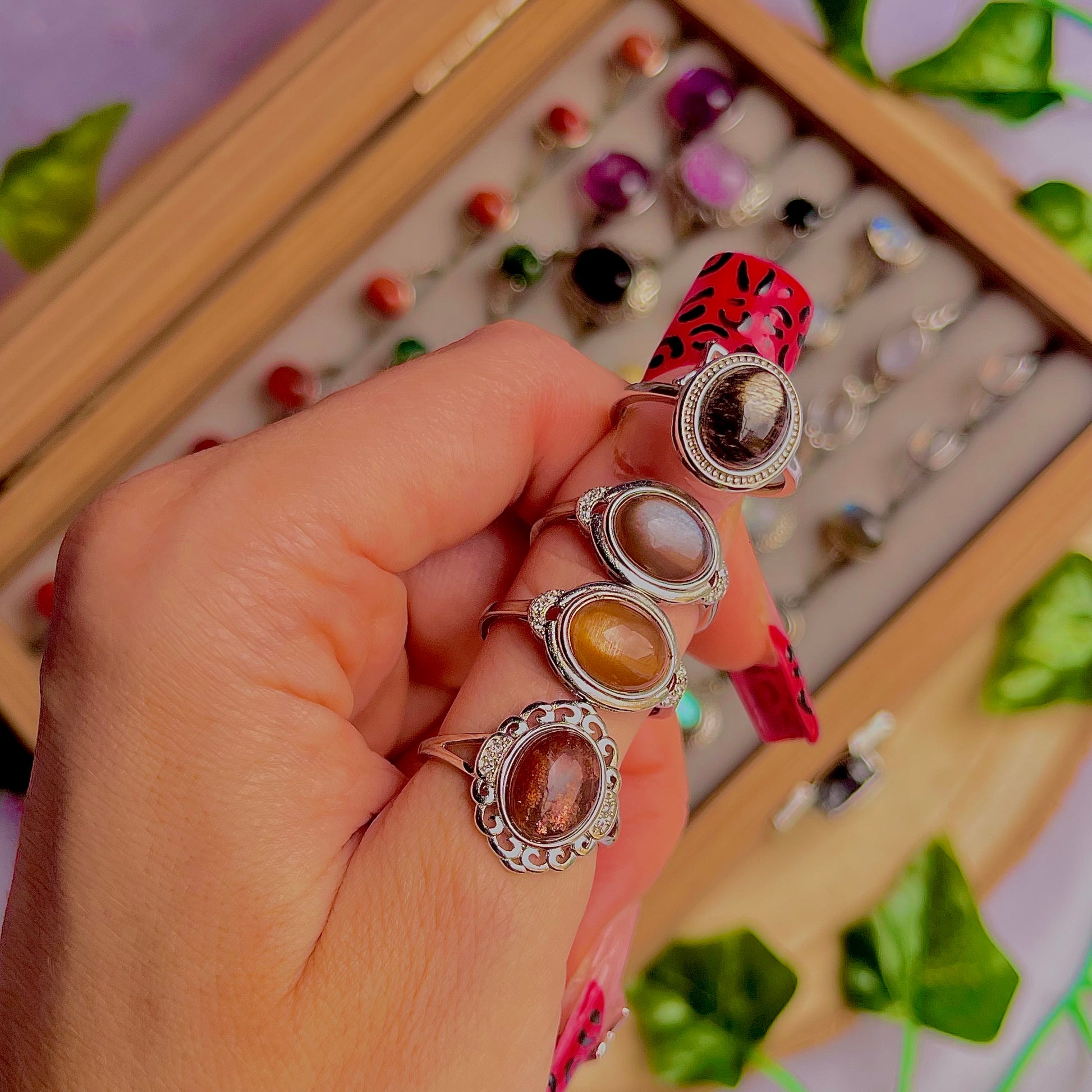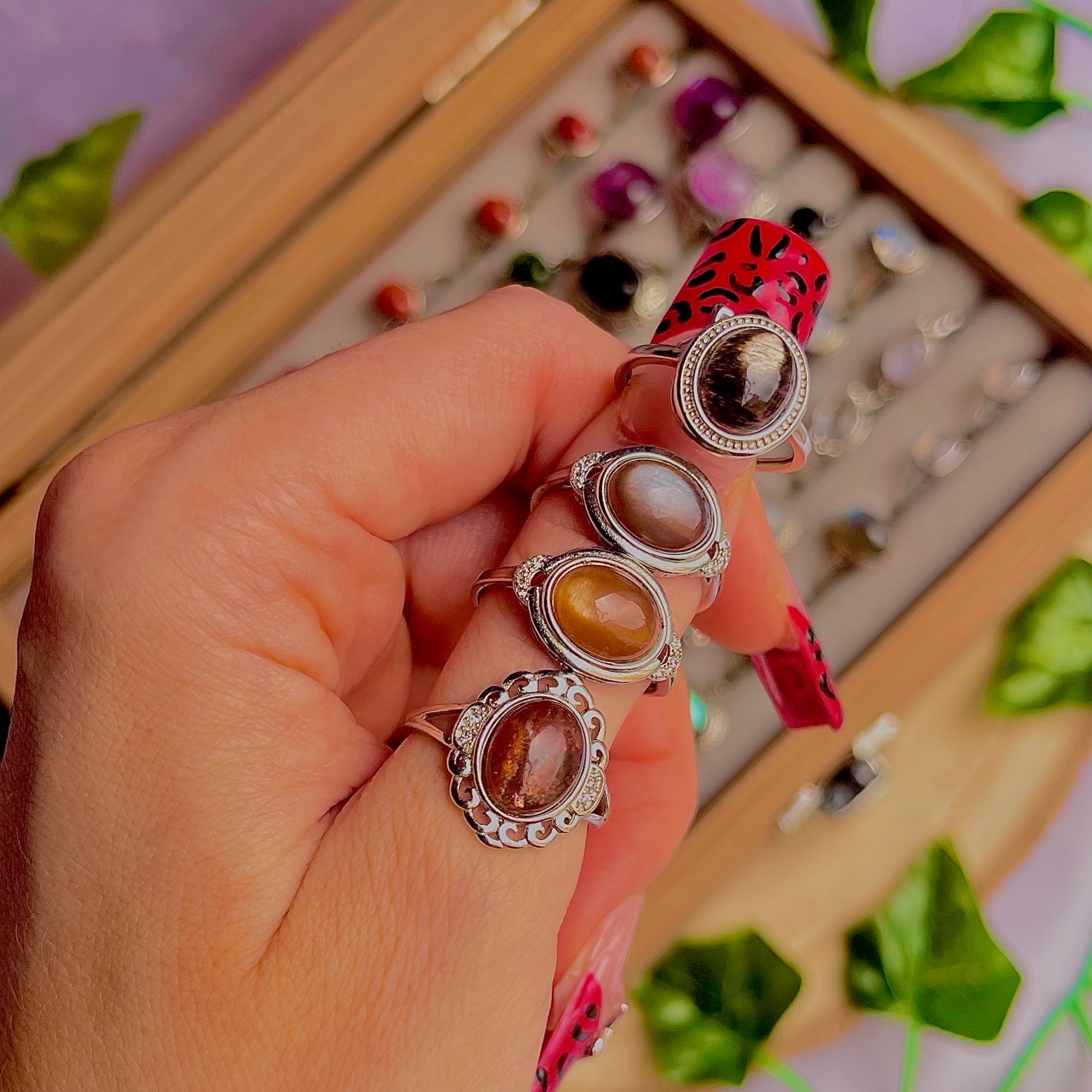 sunstone moonstone ~ 925 sterling silver adjustable rings / choose your own