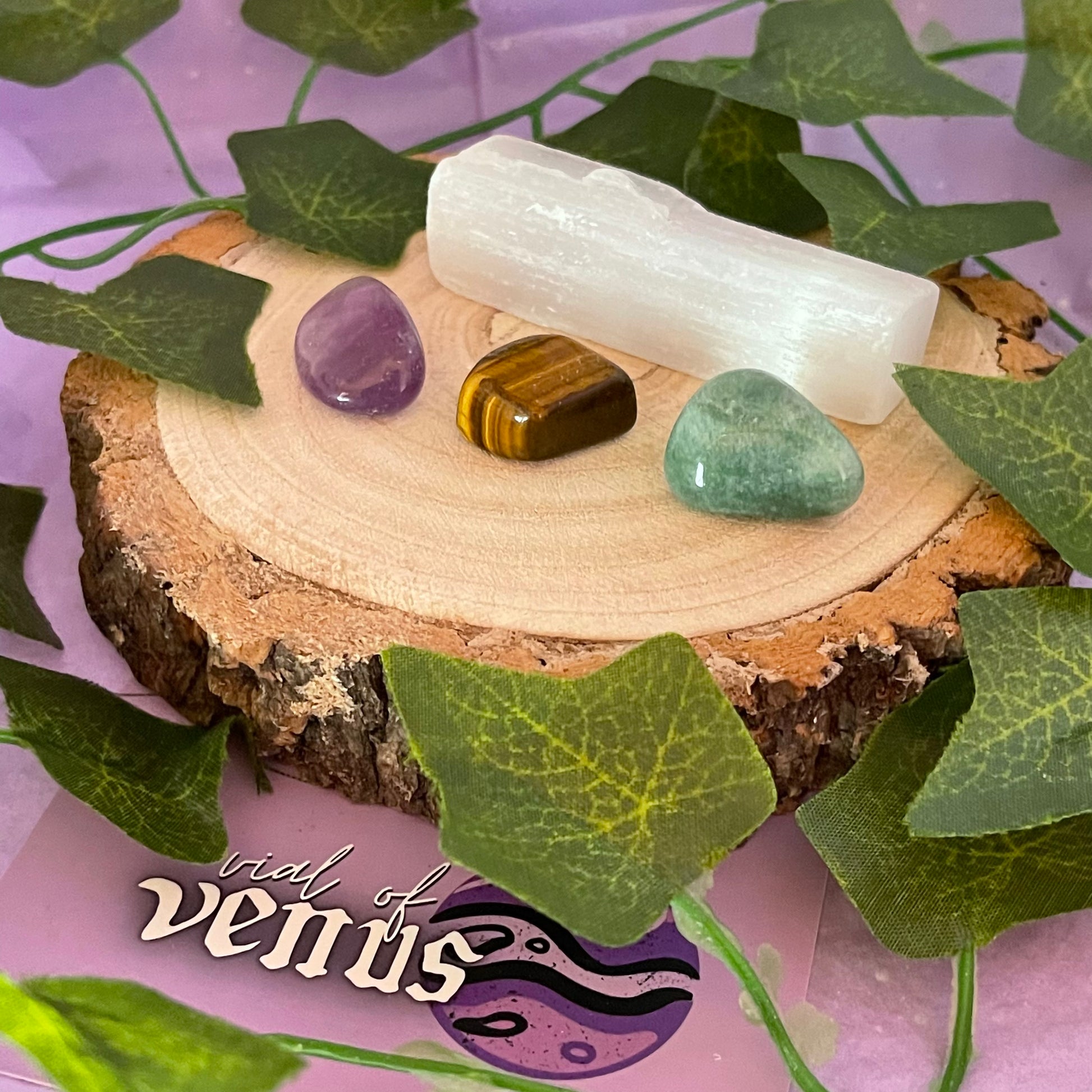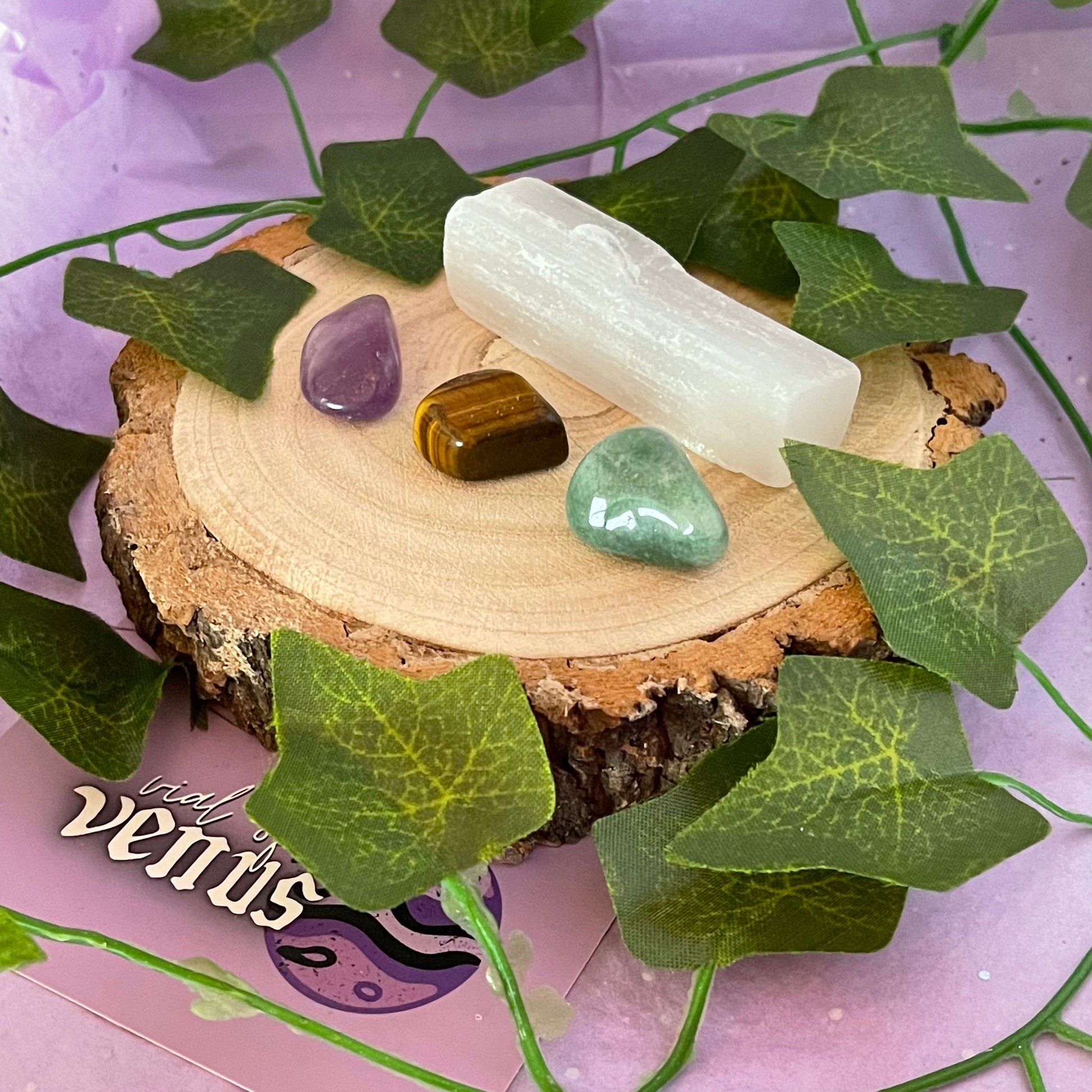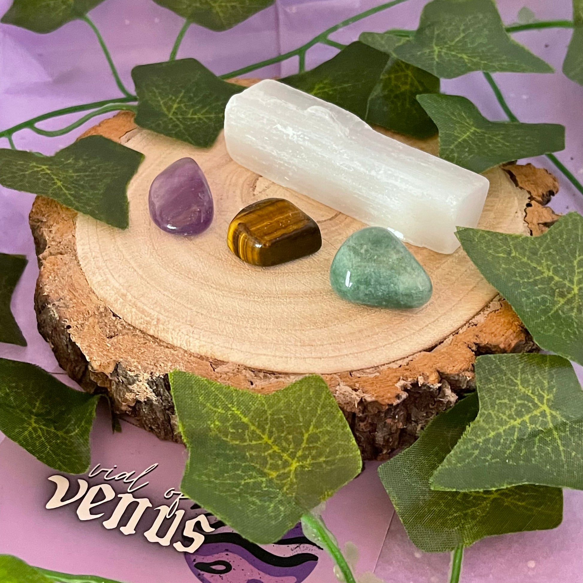 the perfect beginner bundle, includes; amethyst, satin spar selenite small wand, green aventurine and golden tigers eye. You’ll get all pictured in a bundle with an info card describing the benefits/uses of each crystal also, so you know how to use them to the best potential. In my opinion and crystal knowledge these 4 are all staples for any collection, especially those just starting on their crystal journey but not sure what to get first. These are all great crystals, all 4 will kick off your knowledge and no doubt addition in collecting more. They are all beginner friendly, yet do hold great properties which even experienced crystal collectors always go back to gathering more of these into their collection. If all purchased separately would be around £11.11 so is also a great bargain!