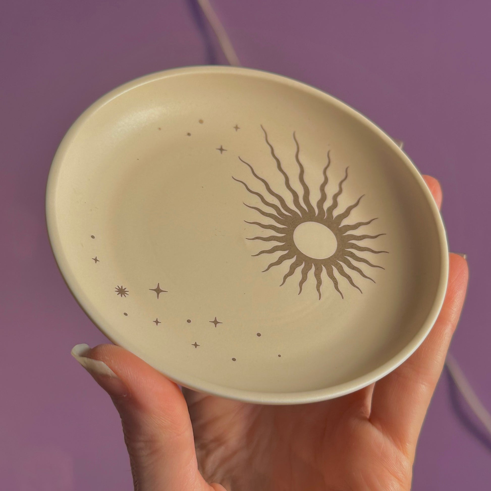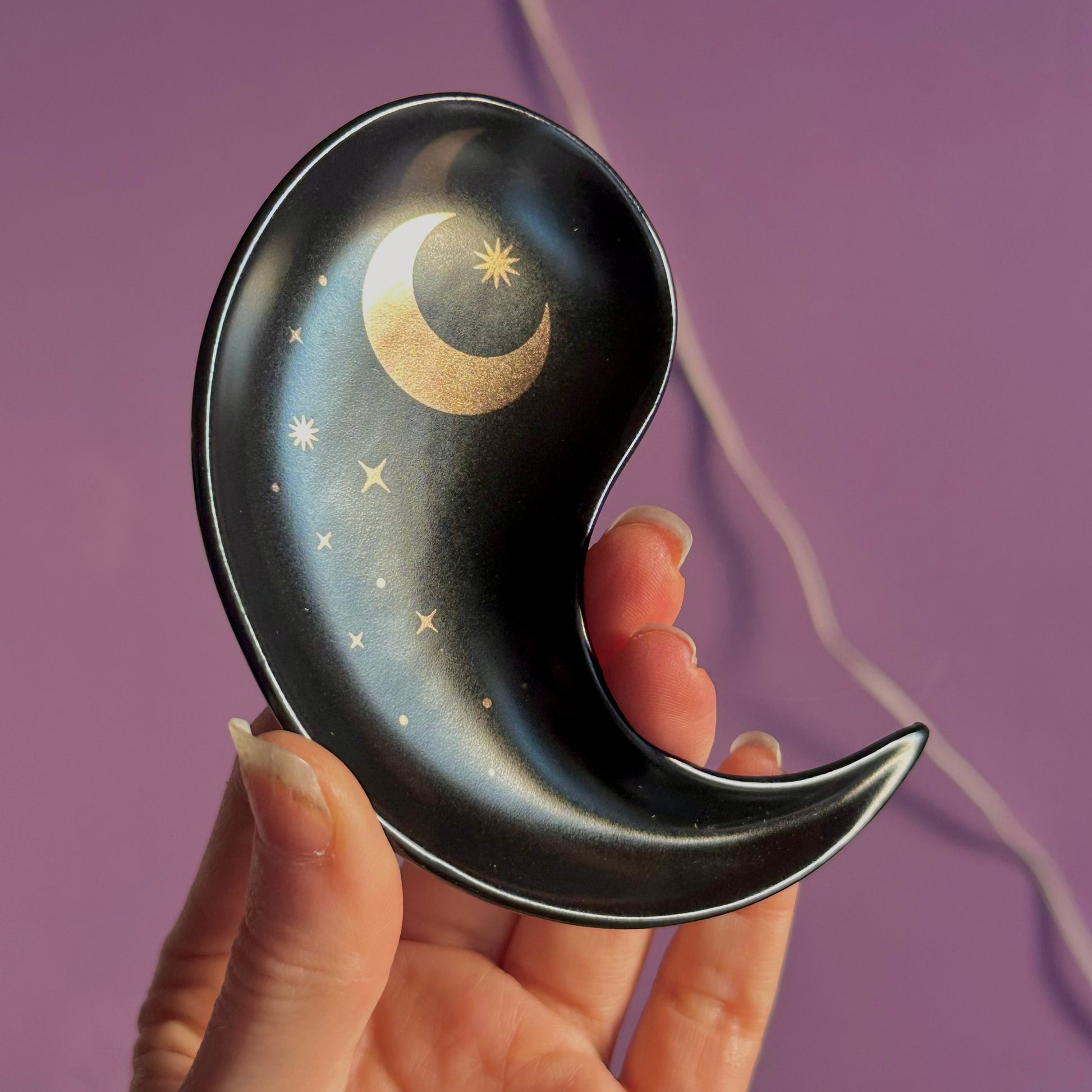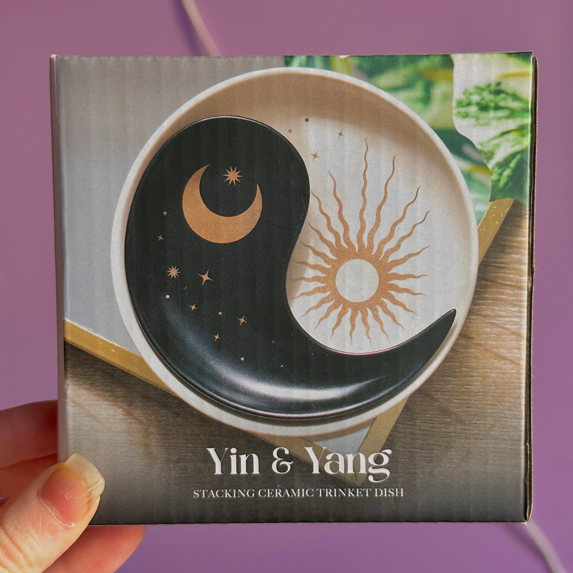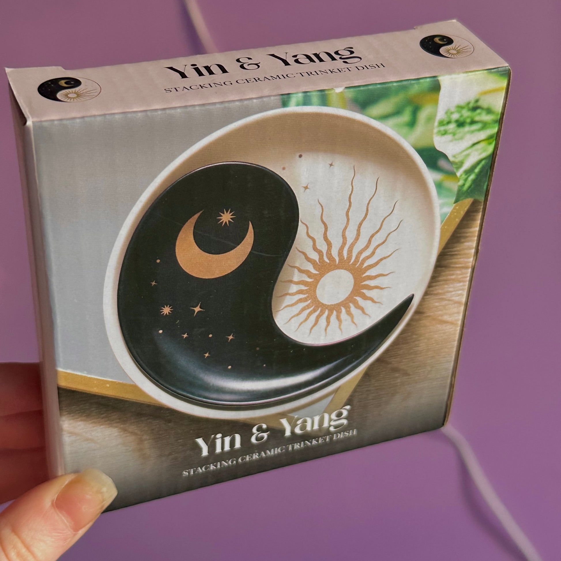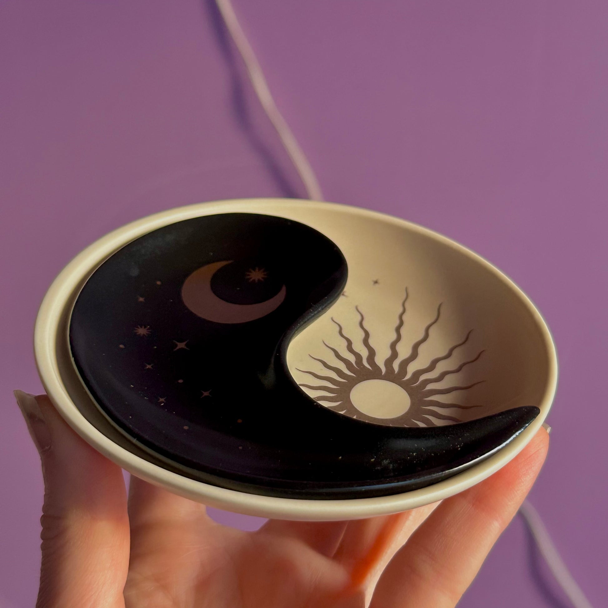 Keep your daily essentials safe and tidy with this 2-piece ying and yang trinket dish. Symbolising the harmonious balance between opposites and featuring a stacking sun and crescent moon design, this trinket dish will make a beautiful addition to any dressing table or desk top.